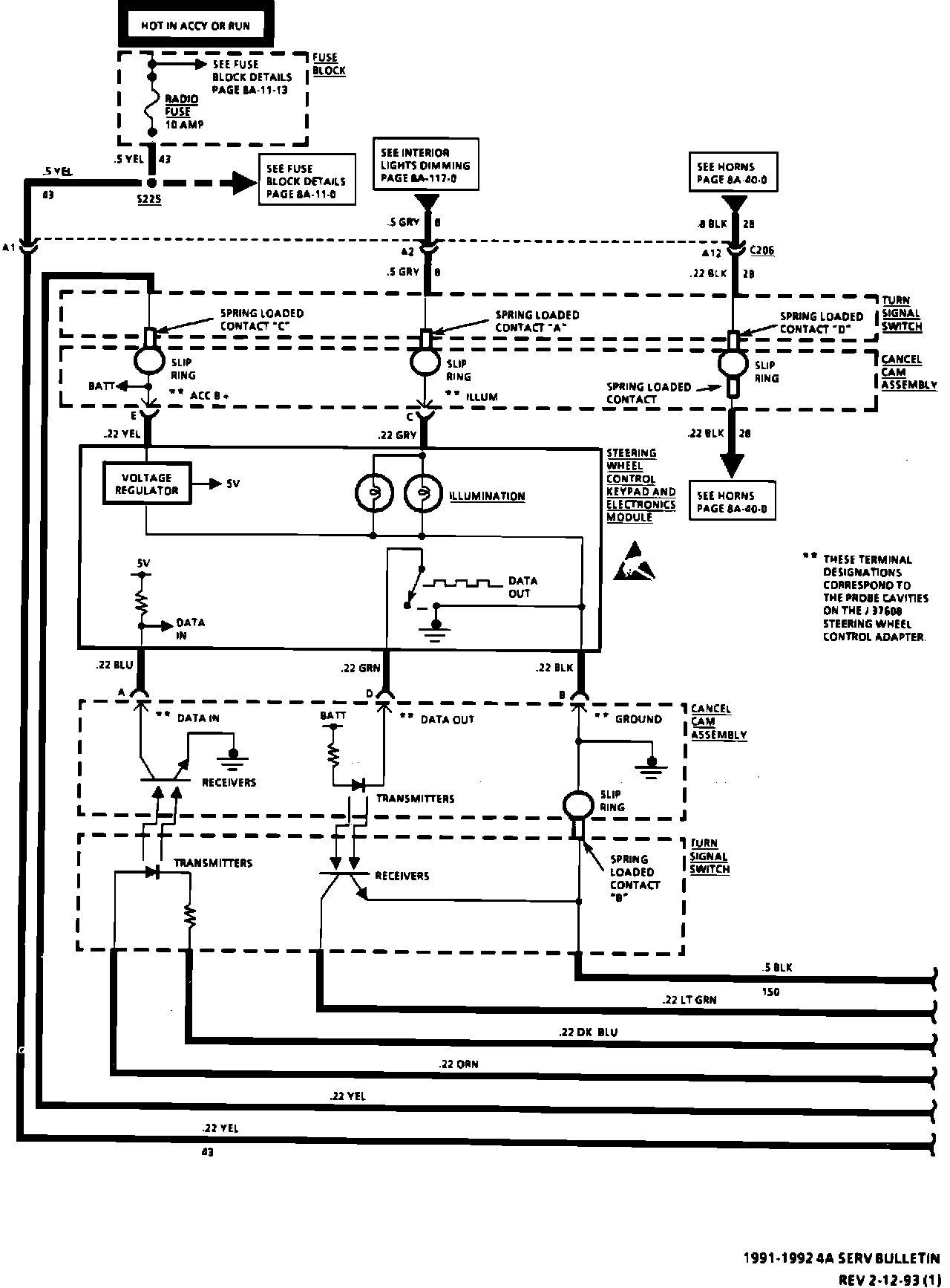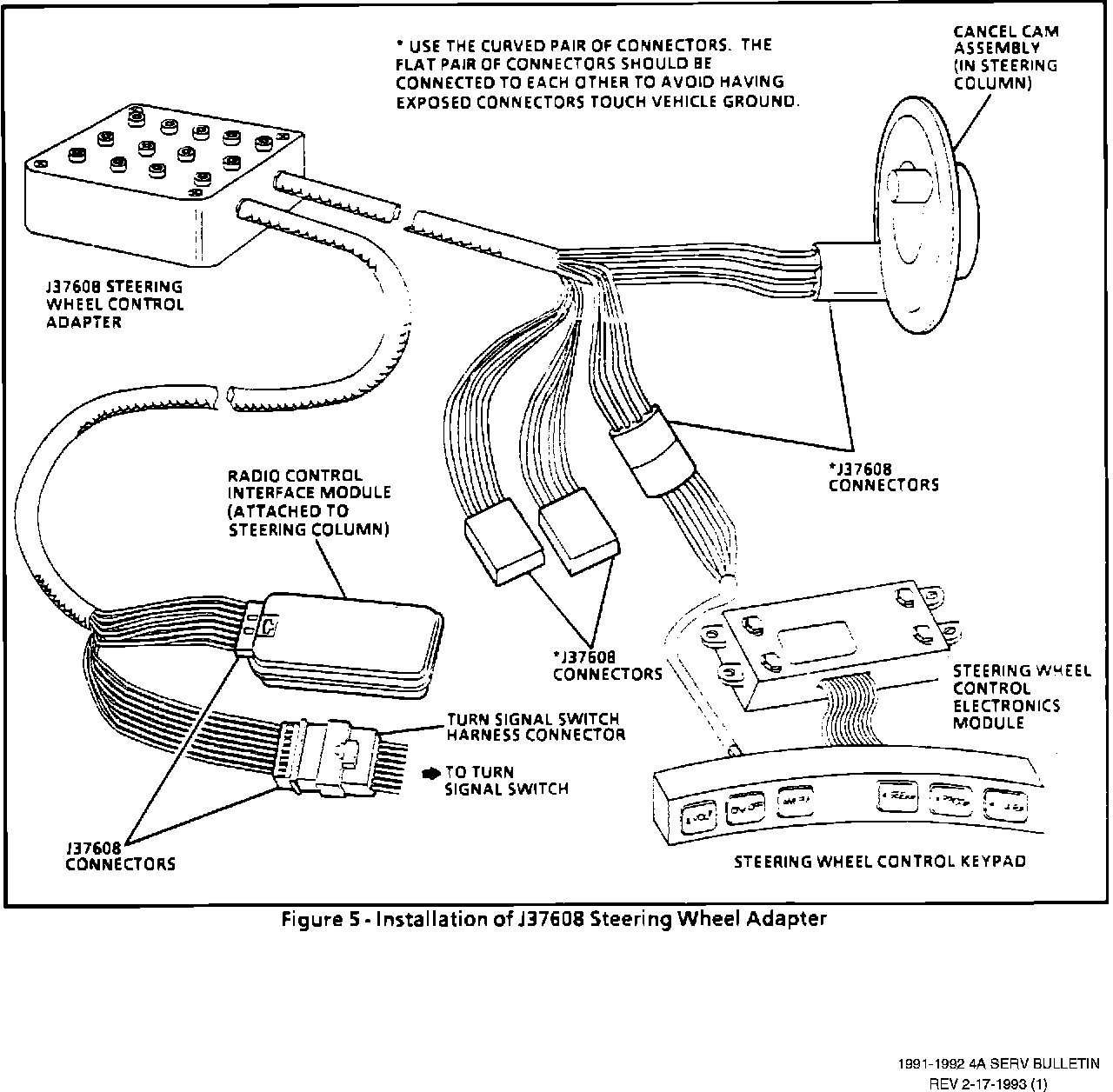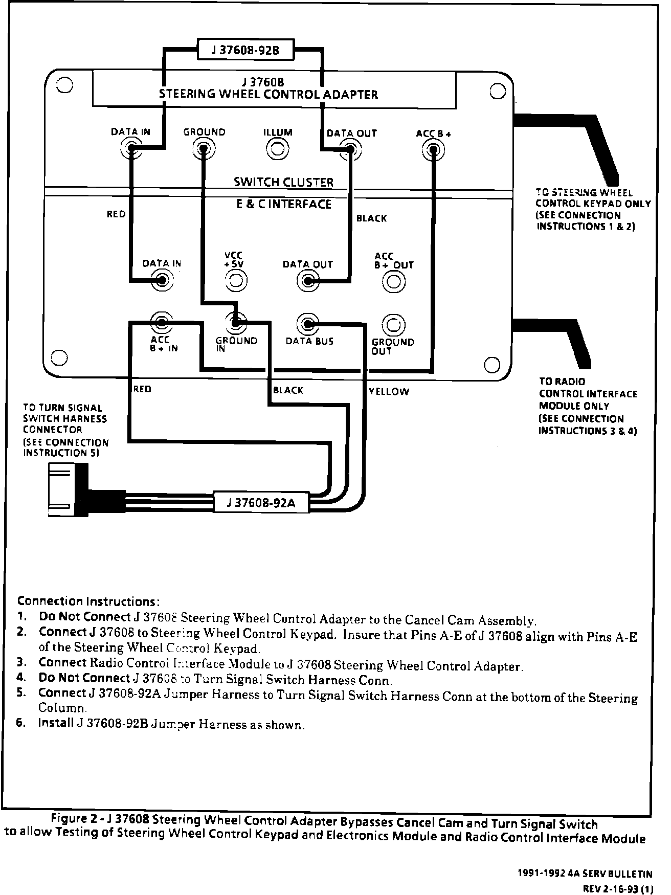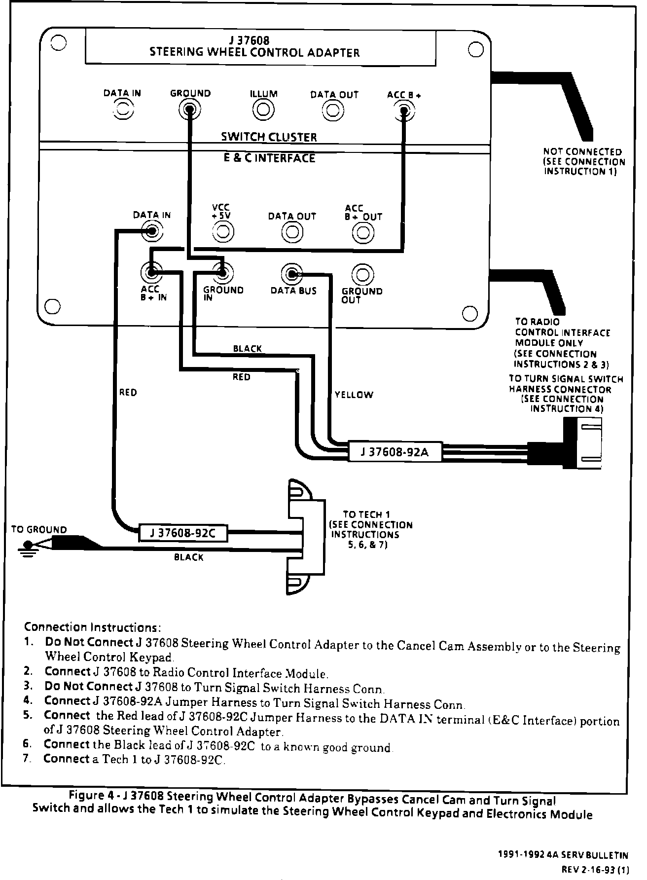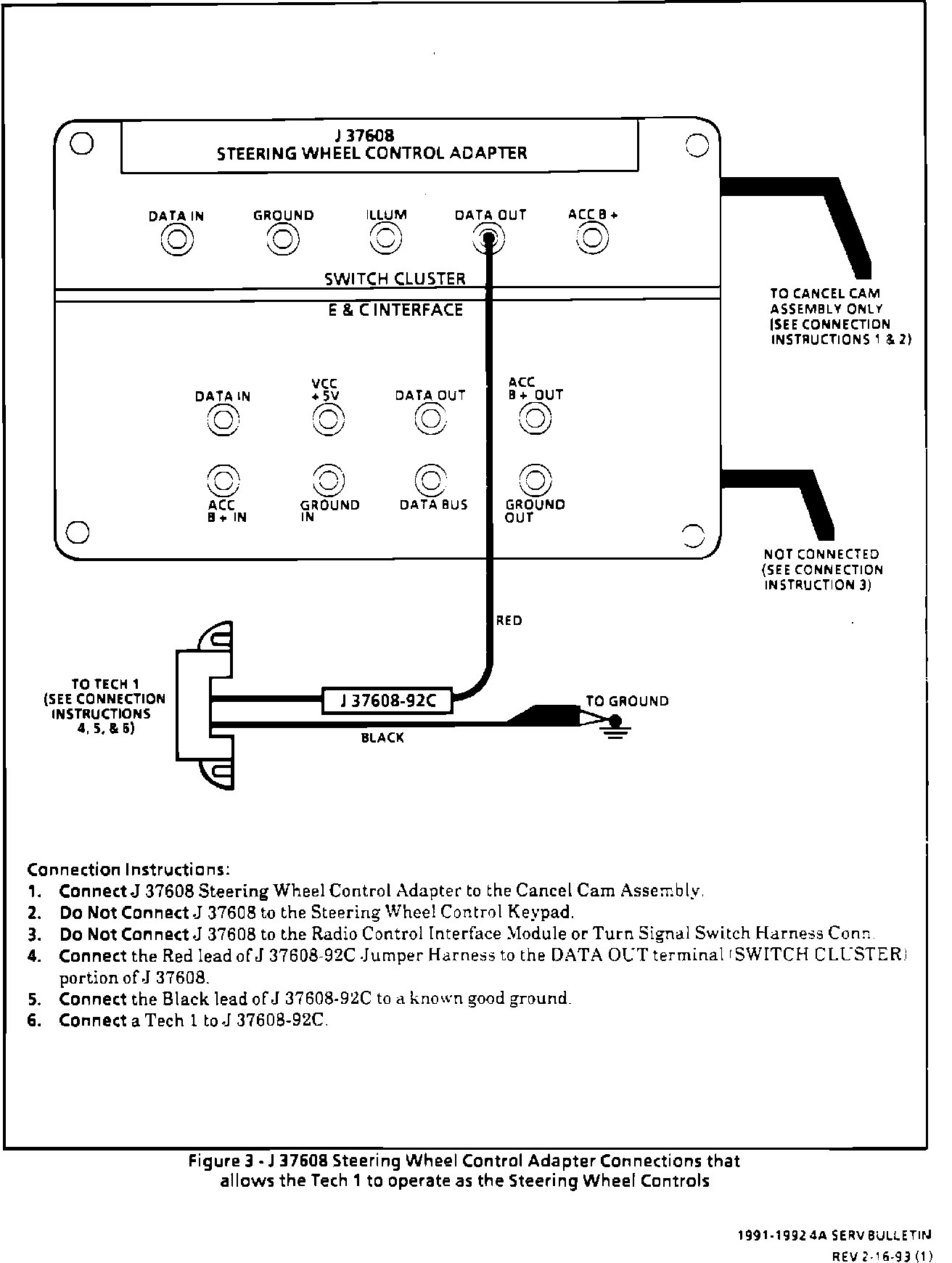 Page 8A-89-12 - Figure 4 J37608 - Tool and Connection to Allow the Tech 1 to Simulate the Steering Wheel Control Keypad and Electronic Module