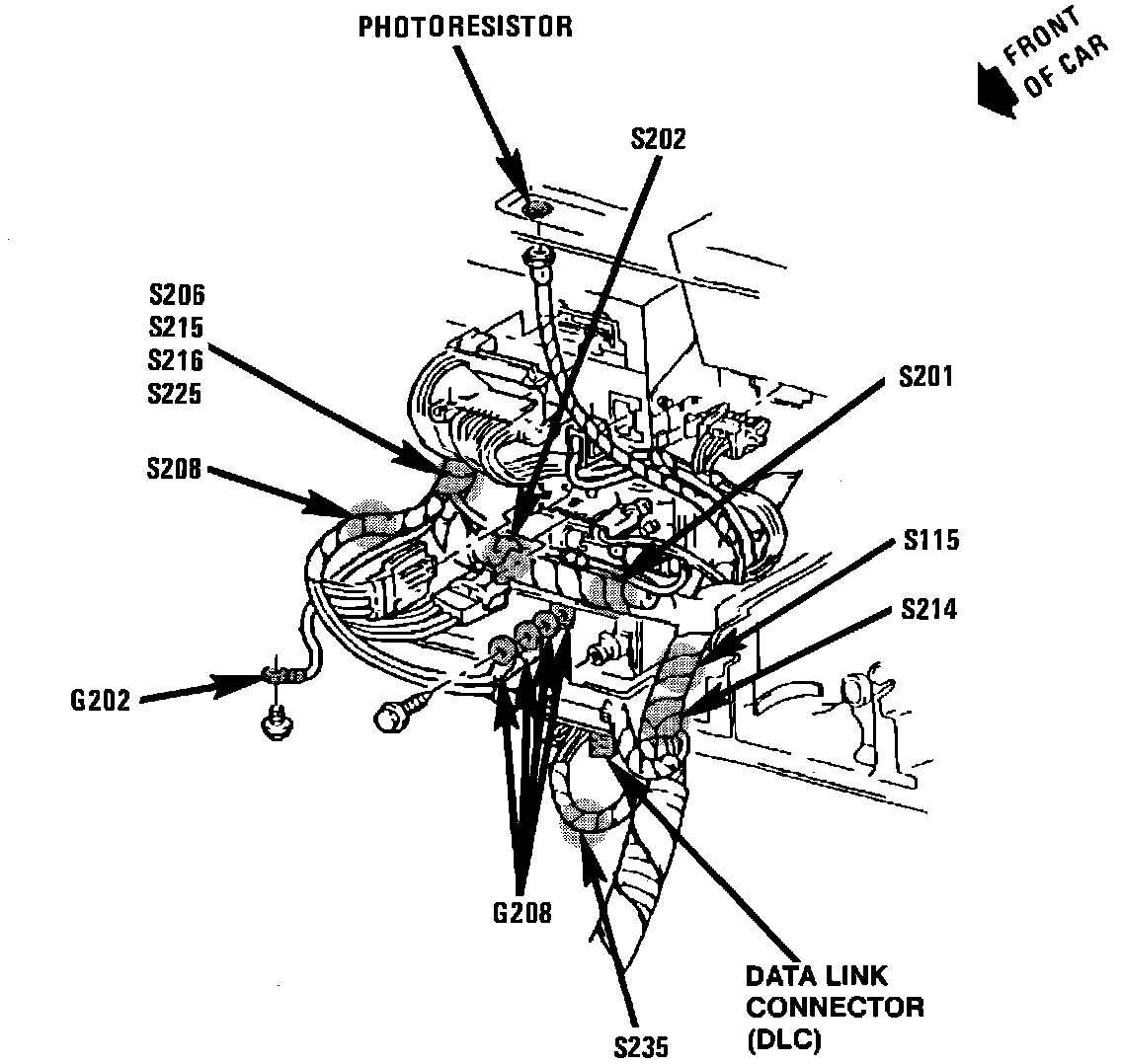The Data Link Connector is located behind center of I/P, below cigar lighter.
