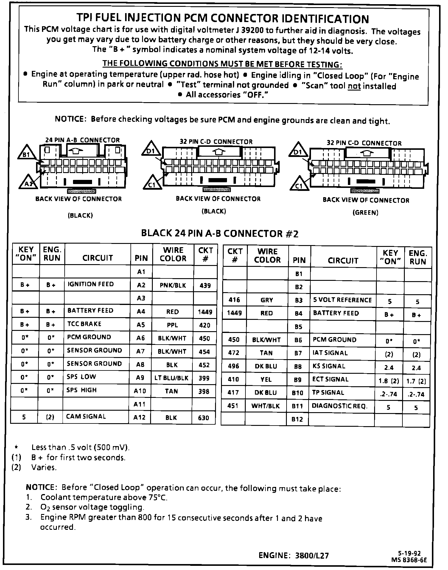 ECM Connector And Pin/Voltage Reference Chart (1 Of 2):