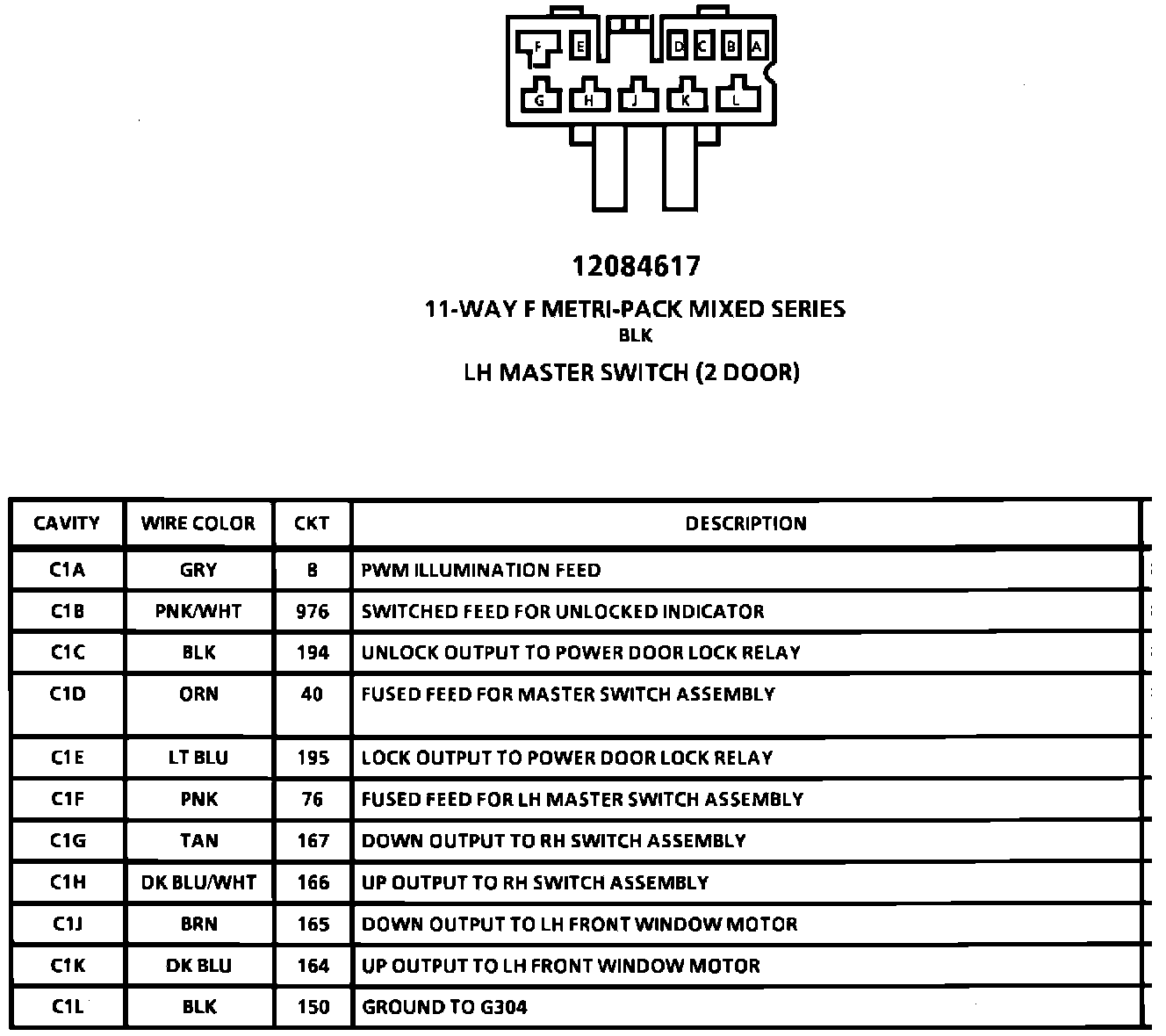 LH Master Switch (2 Door) Connector:
