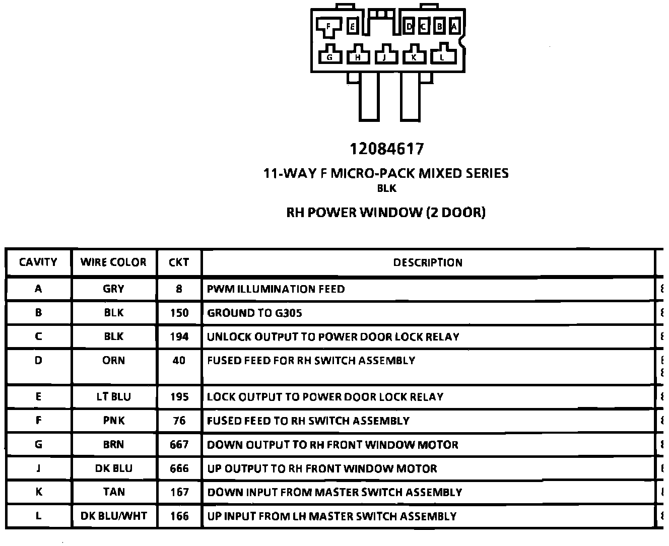RH Power Window (2 Door) Connector: