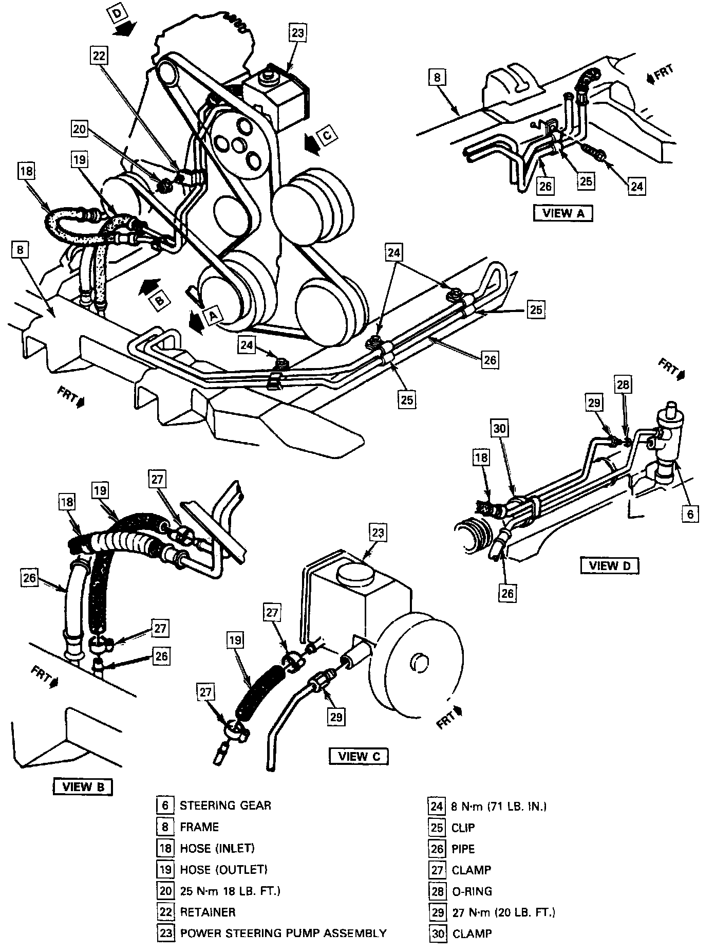 6. Loosen pressure pipe from steering gear and power steering pump.