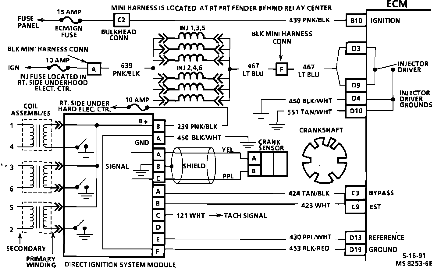 The Electronic Ignition (EI) module monitors the crank sensor signals and based on these signals sends a reference signal to the ECM so that correct spark and fuel injector control can be maintained during all driving conditions.