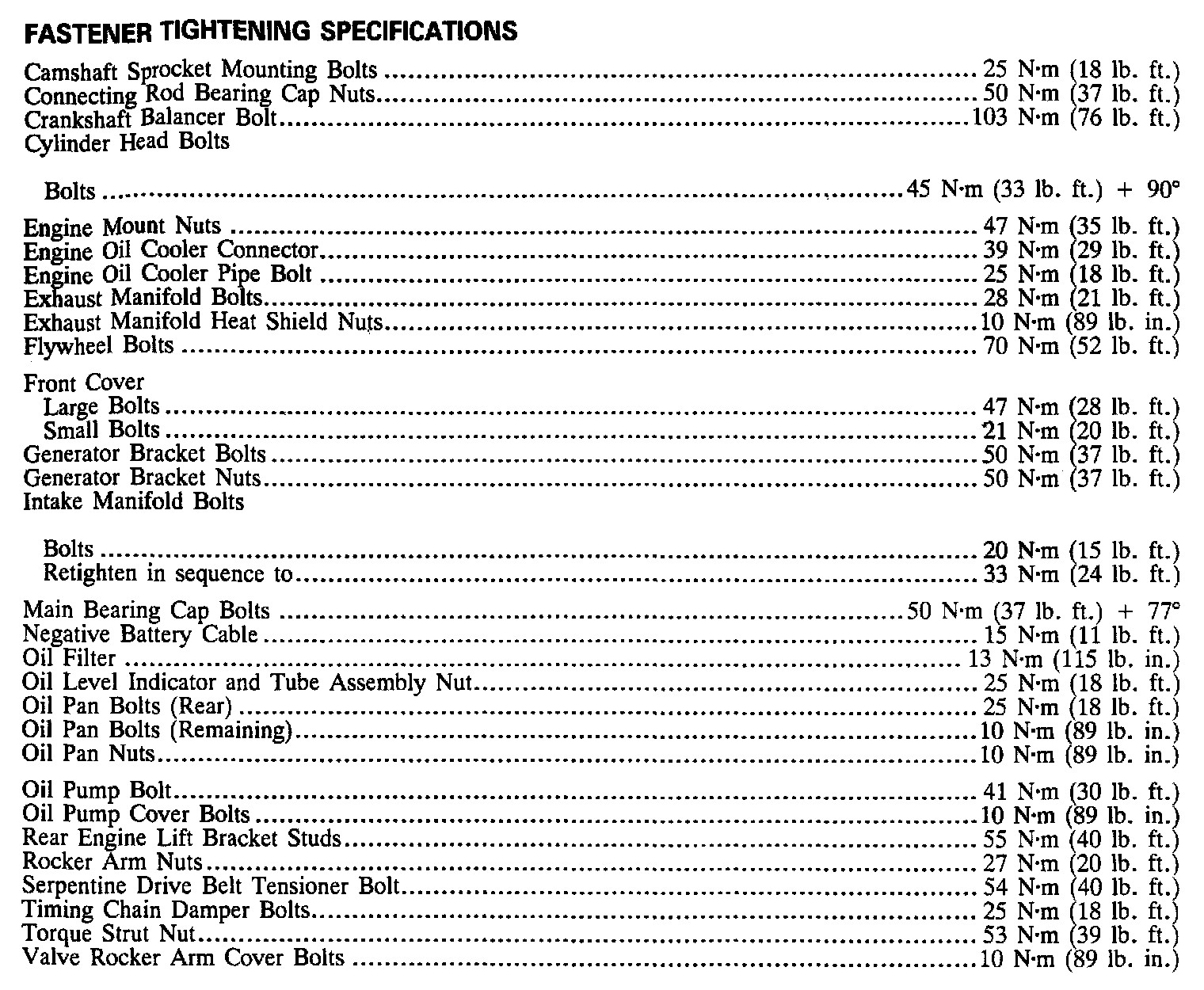Continued Engine Specifications: