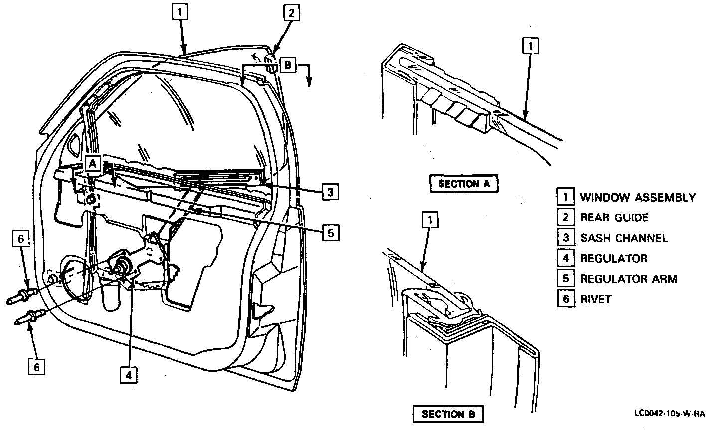 Coupe and sedan front doors use a single lift arm regulator. The following provides the procedures required for removal and replacement of both power and manual window regulators.