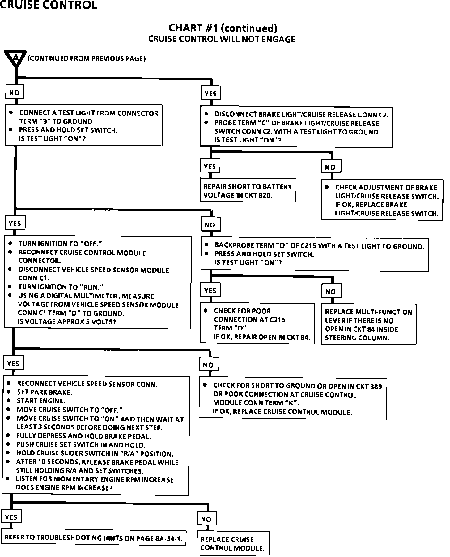 This update replaces "Chart # 1, Cruise Control Will Not Engage" found in Section 8A-34.