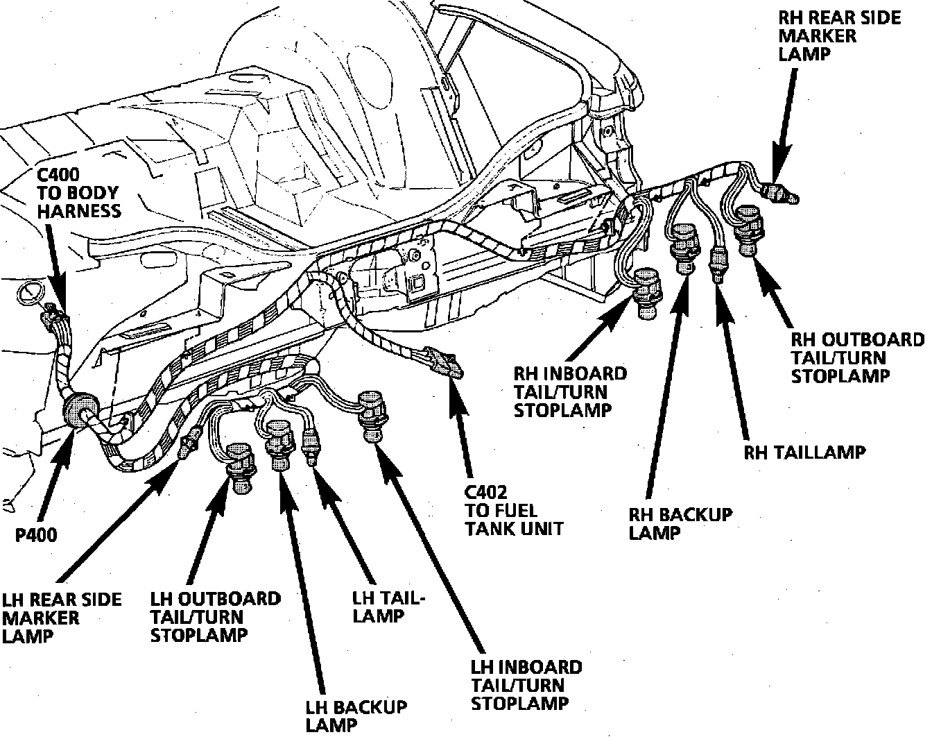 Component Location View. Rear Lamps (Sedan):