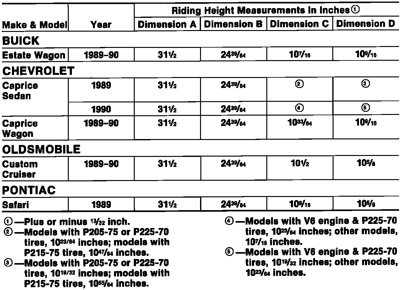 Fig. 3 Vehicle Riding Height Measurement Locations & Specifications (Part 1 Of 2). 1989-90: