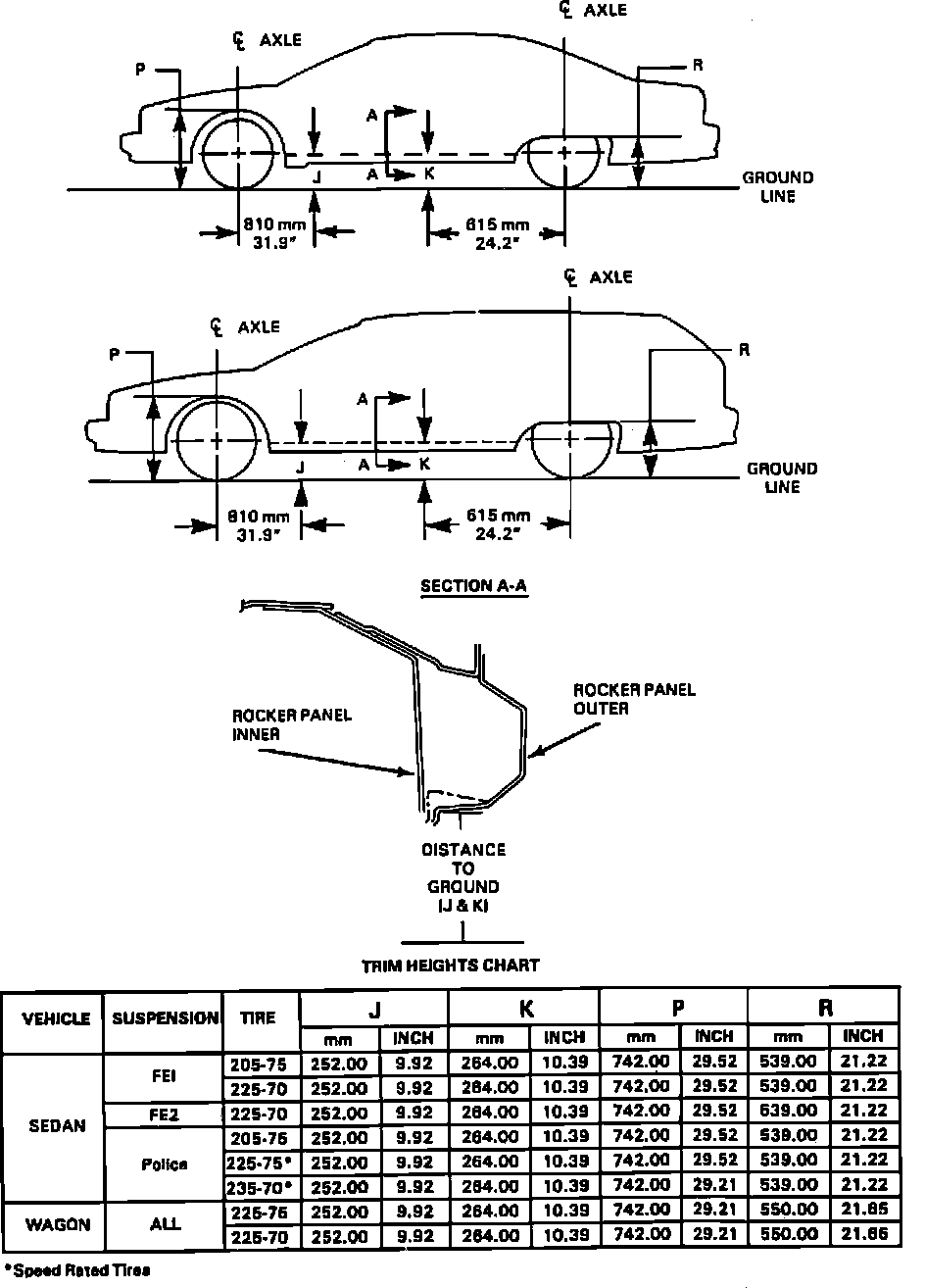 Fig. 5 Vehicle Riding Height Measurement Locations & Specifications. 1992: