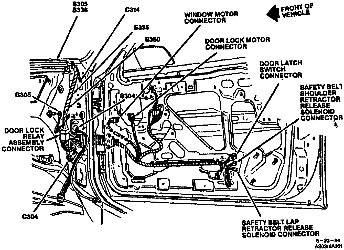 The Door Lock Relay Assembly is located on the RH shroud.