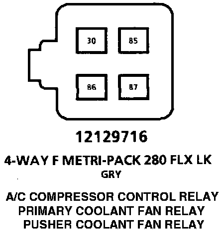 A/C Compressor Control Relay, Primary Coolant Fan Relay, Pusher Coolant Fan Relay: