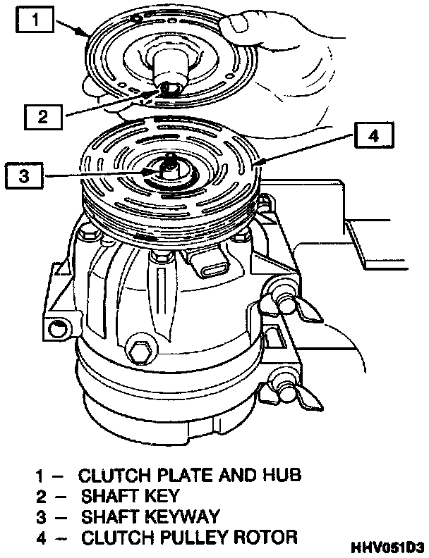 3. Align the shaft key with the shaft keyway and place the clutch plate and the hub assembly onto the compressor shaft.