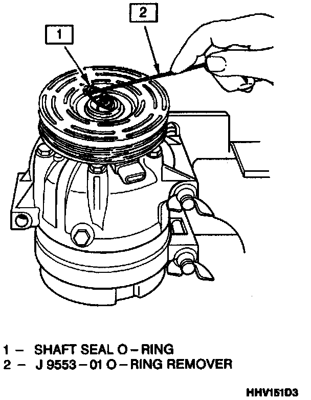 7. Remove and discard the seal O-ring from the compressor neck using O-ring remover J 9553-01.