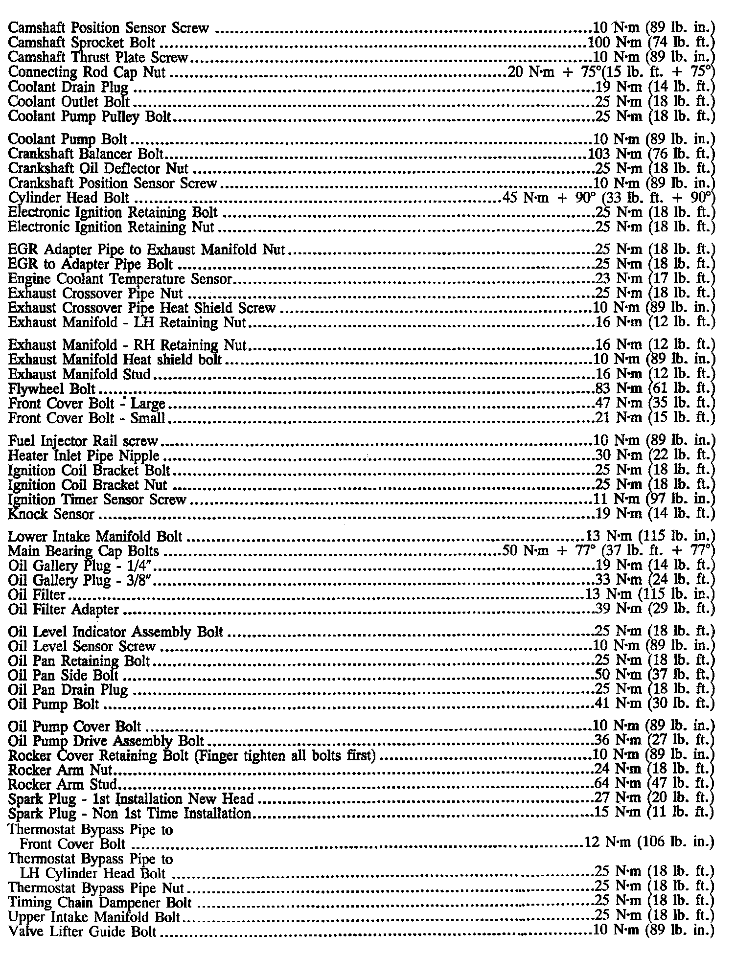 Fastener Tightening Specifications - Engine
