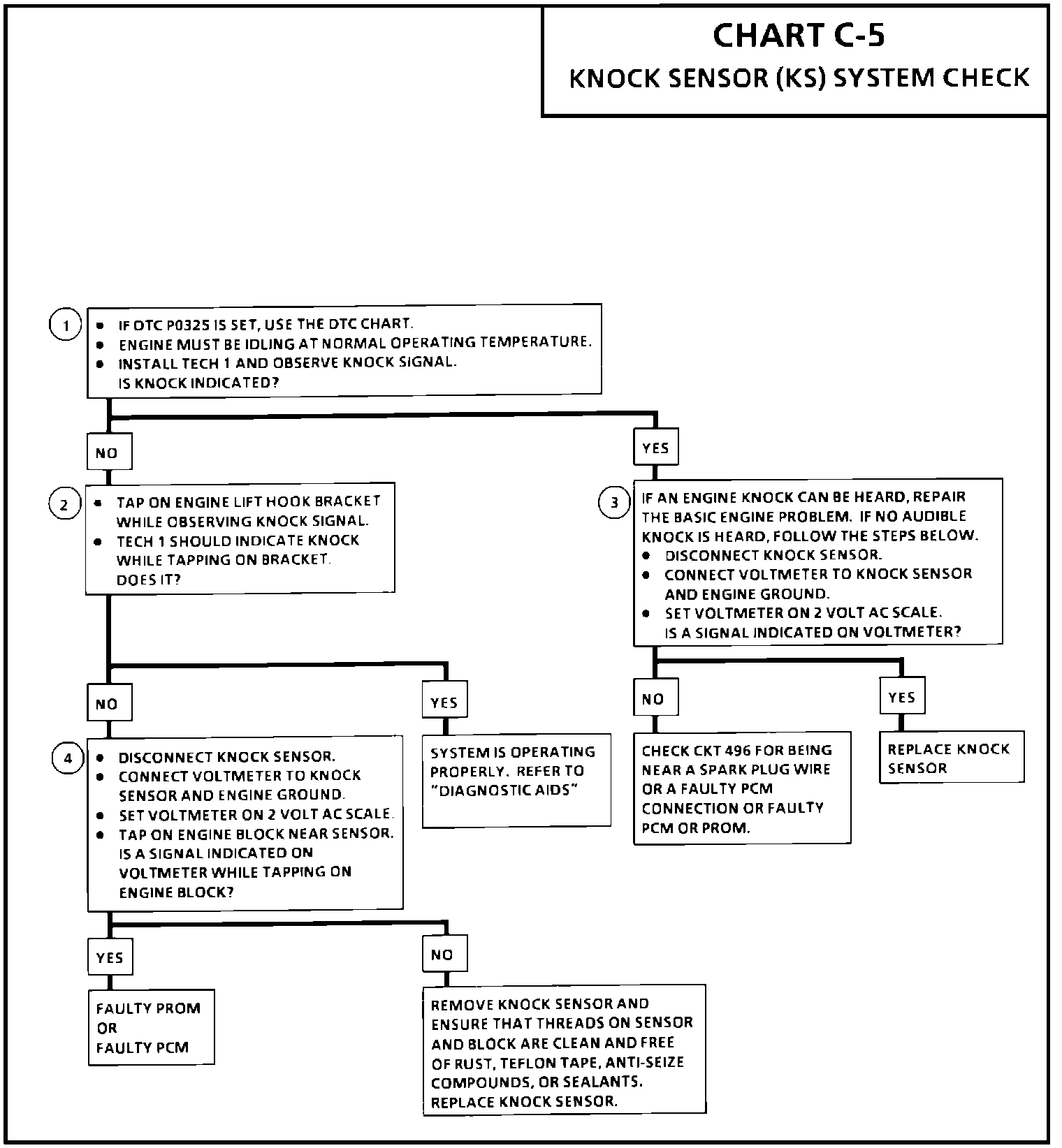 4. This test determines if the knock sensor is faulty or if the knock sensor portion of the PROM is faulty. If it is determined that the PROM is faulty, be sure that it tis properly installed and latched into place. If not properly installed repair and retest.