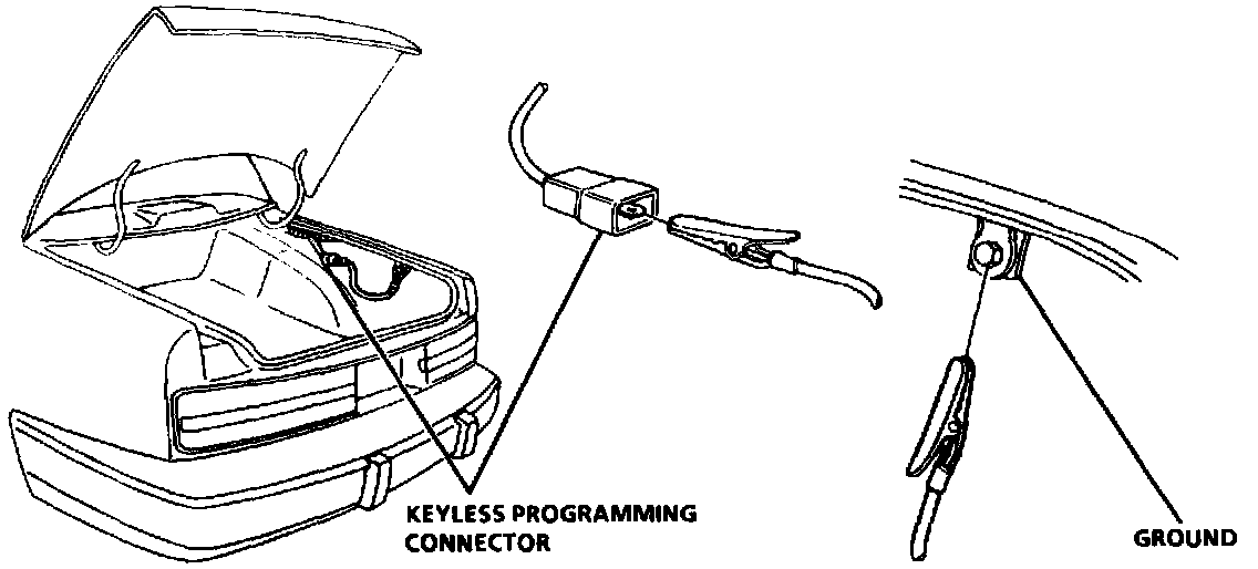 1. Jumper the Keyless Programming Connector to ground (all power door locks will lock and unlock).