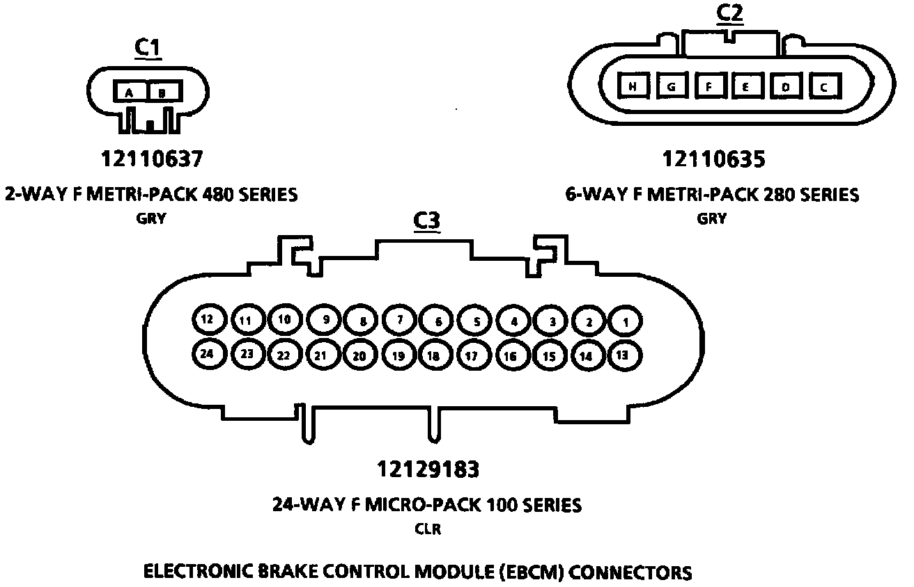 Electronic Brake Control Module (EBCM) Connectors: C1, C2 & C3: