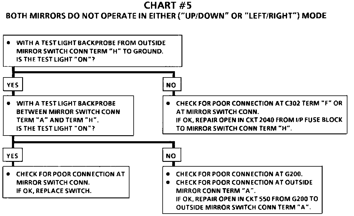 Chart #5 Both Mirrors Do Not Operate In Either (UP/DOWN Or LEFT/RIGHT) Mode:
