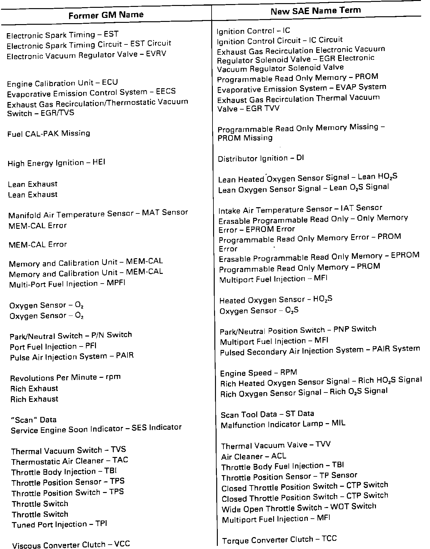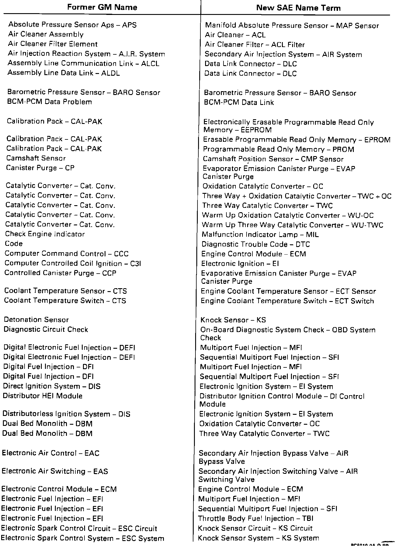 SAE J1930 Component Acronyms