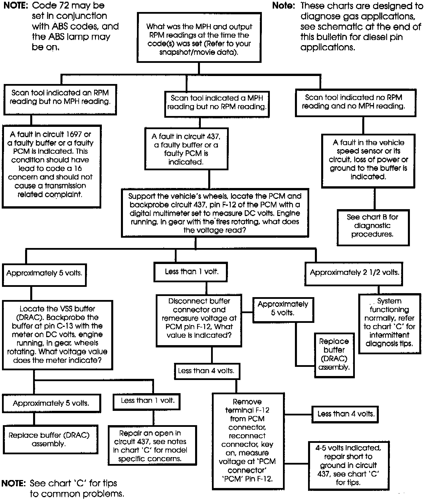 One of the most common and difficult to diagnose 4L60-E concerns is code 72, vehicle speed sensor loss. It has shown itself to be a very common concern for both the dealer and independent shop. This bulletin is designed to address the code, and proper diagnostic steps required to locate the root cause of the problem. This bulletin will be followed with another showing component locations, as well as the most common causes for the code on each vehicle application.