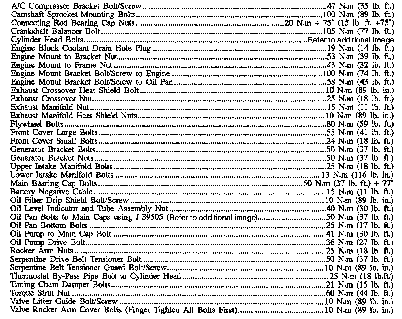 Fastener Tightening Specifications - Engine