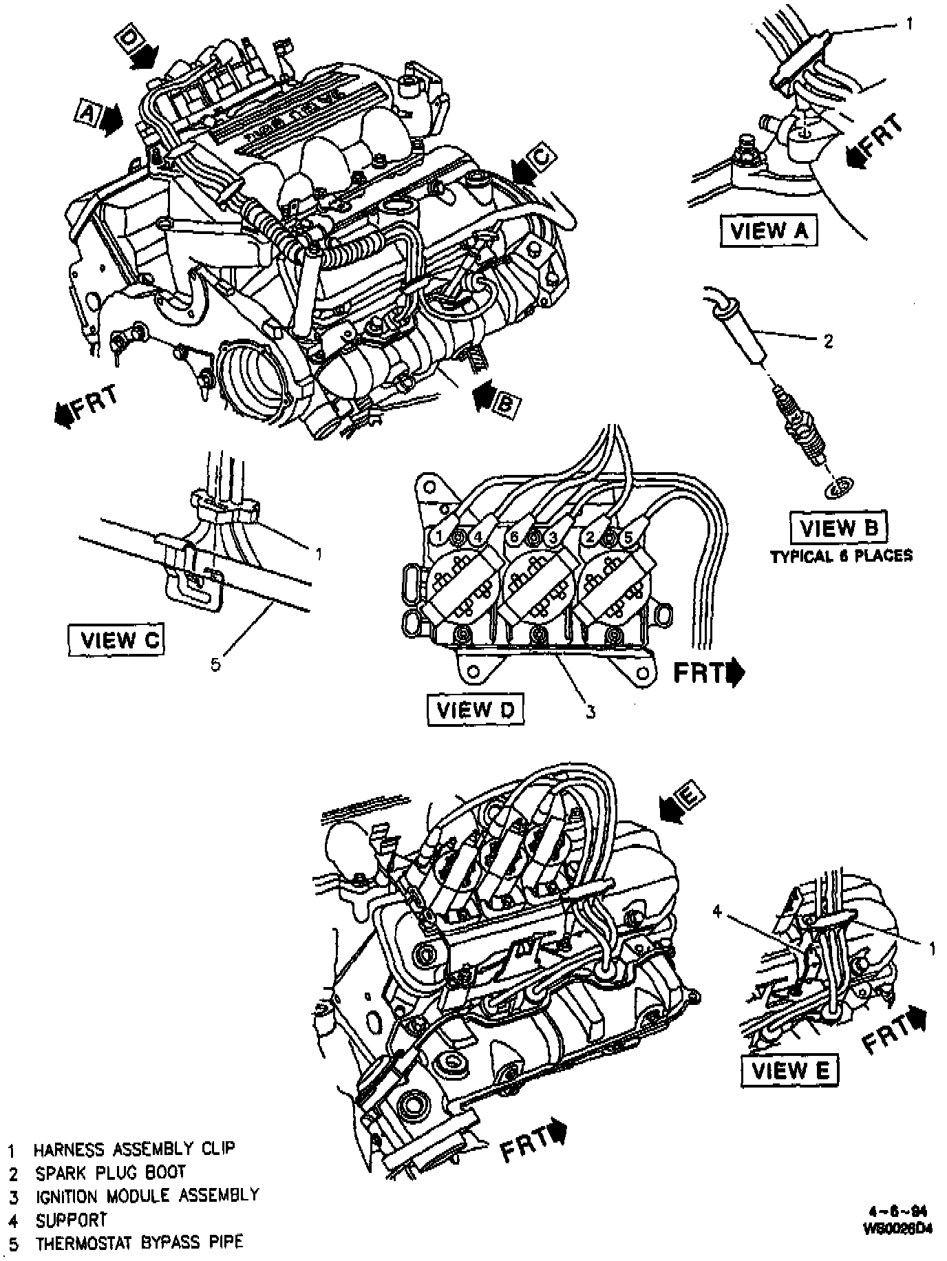 3. Spark plug wire retaining clips to engine.