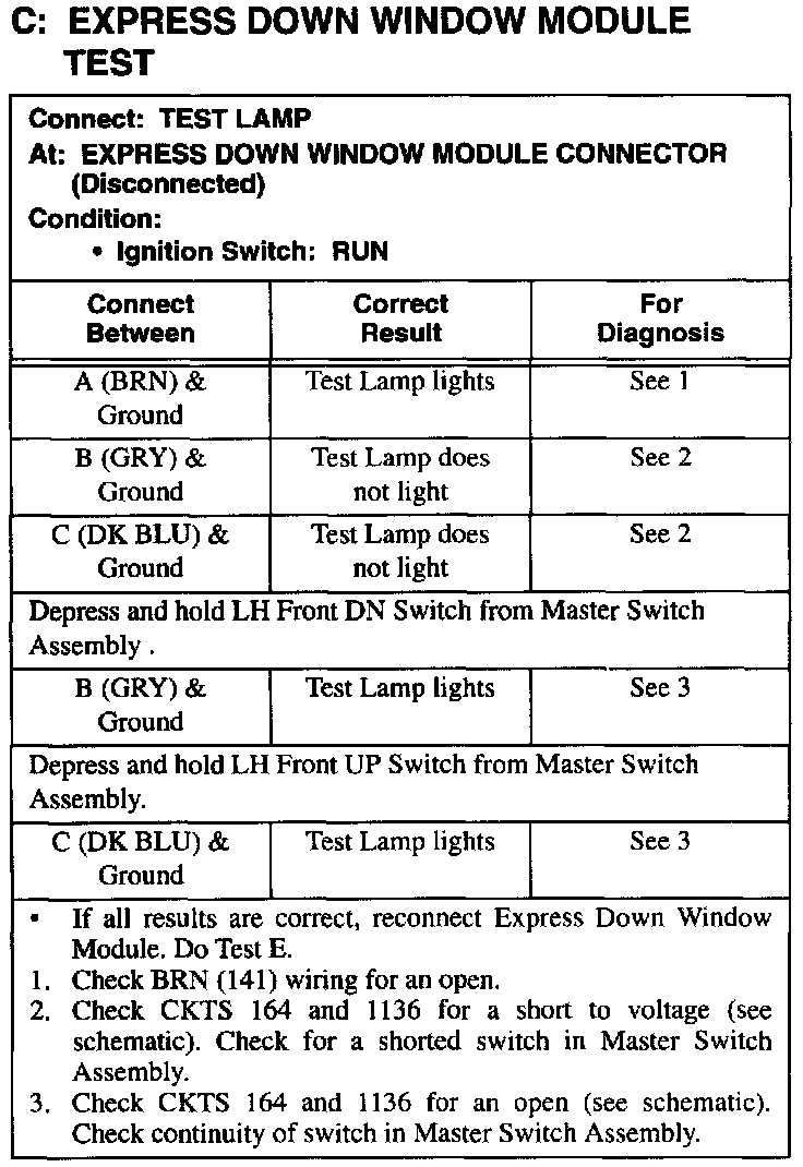 Test C: Express Down Window Module Test