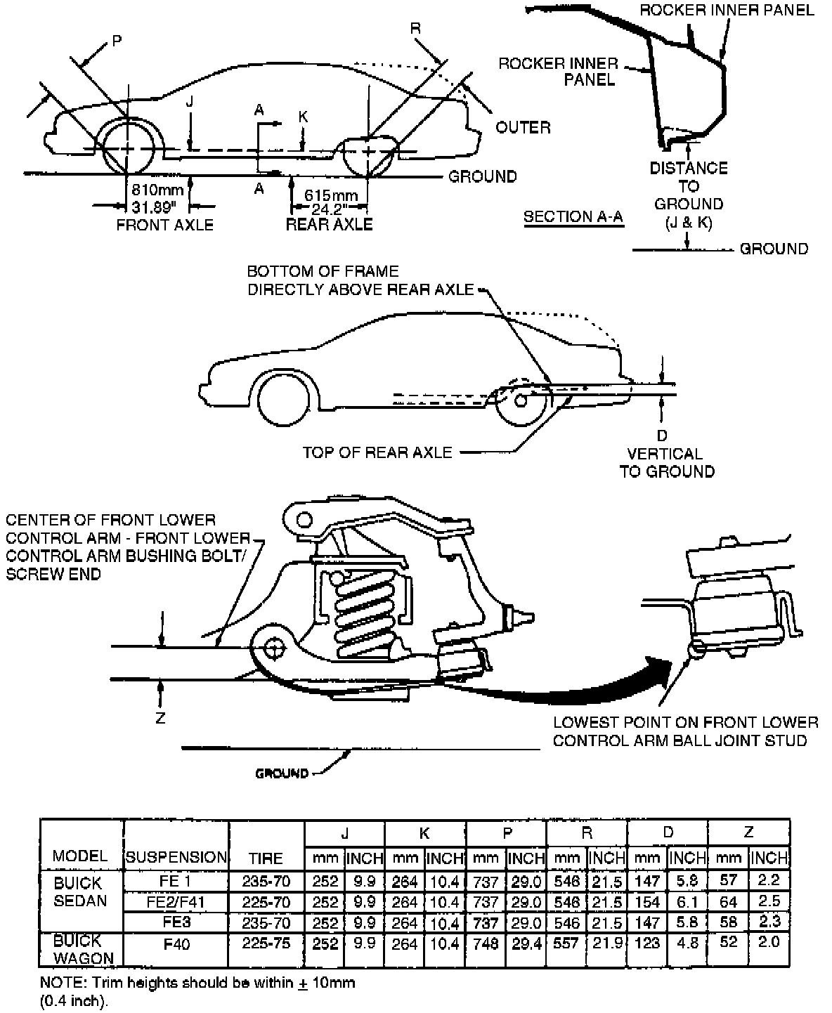 Fig. 3 Vehicel Ride Height Measurement Locations & Specifications:
