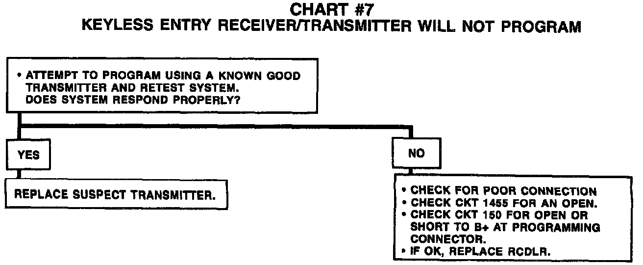 Chart #7 Keyless Entry Receiver/Transmitter Will Not Program: