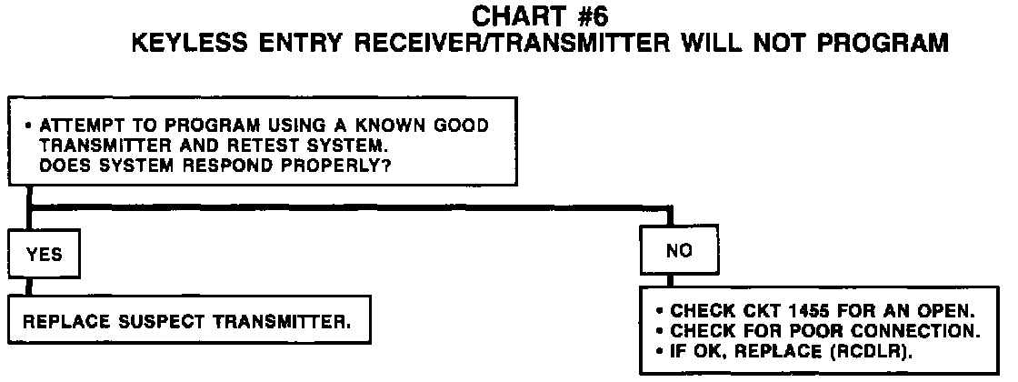 Chart #6 Keyless Entry Receiver/Transmitter Will Not Program: