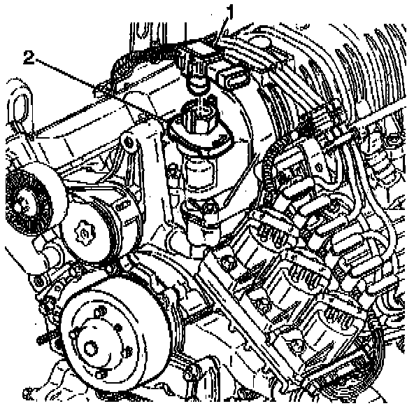 2. Carefully bend the locking tabs holding the MAP (1) sensor to the PCV valve cover (2) just enough to remove the MAP sensor.