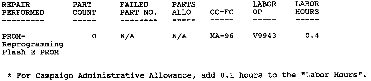 Each vehicle corrected in accordance with the instructions outlined in this Product Campaign Bulletin will require a "Campaign Identification Label". Each label provides a space to include the campaign number and the five (5) digit dealer code of the dealer performing the campaign service. This information may be inserted with a typewriter or a ball point pen.Each "Campaign Identification Label" is to be located on the radiator core support in an area which will be visible when the vehicle is brought in by the customer for periodic servicing. When installing the new Campaign Identification Label, be sure to install the clear protective covering. Additional Campaign Identification Labels can be obtained from VISPAC Incorporated by calling 1-800-269-5100 (Monday-Friday, 8:00 a.m. to 4:30 p.m. EST). Ask for Item Number S-1015 when ordering.