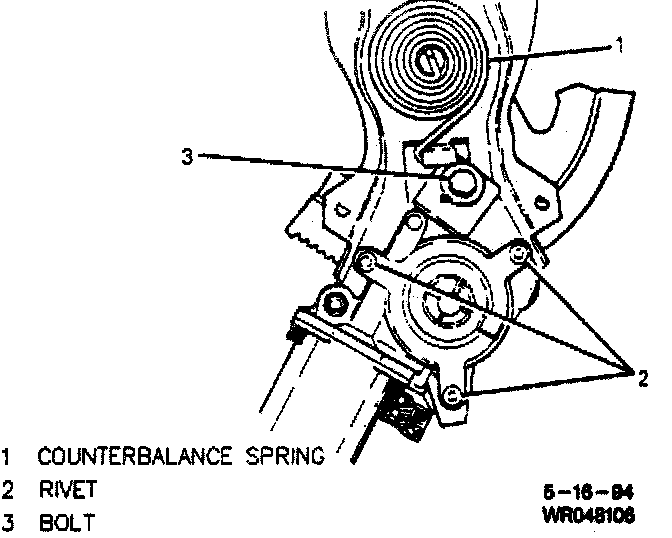 CAUTION: Step 2 must be preformed once the regulator is removed from the door. The regulator lift arm is under tension from the counterbalance spring and can cause personal injury if the motor is removed without locking the sector gear in position.