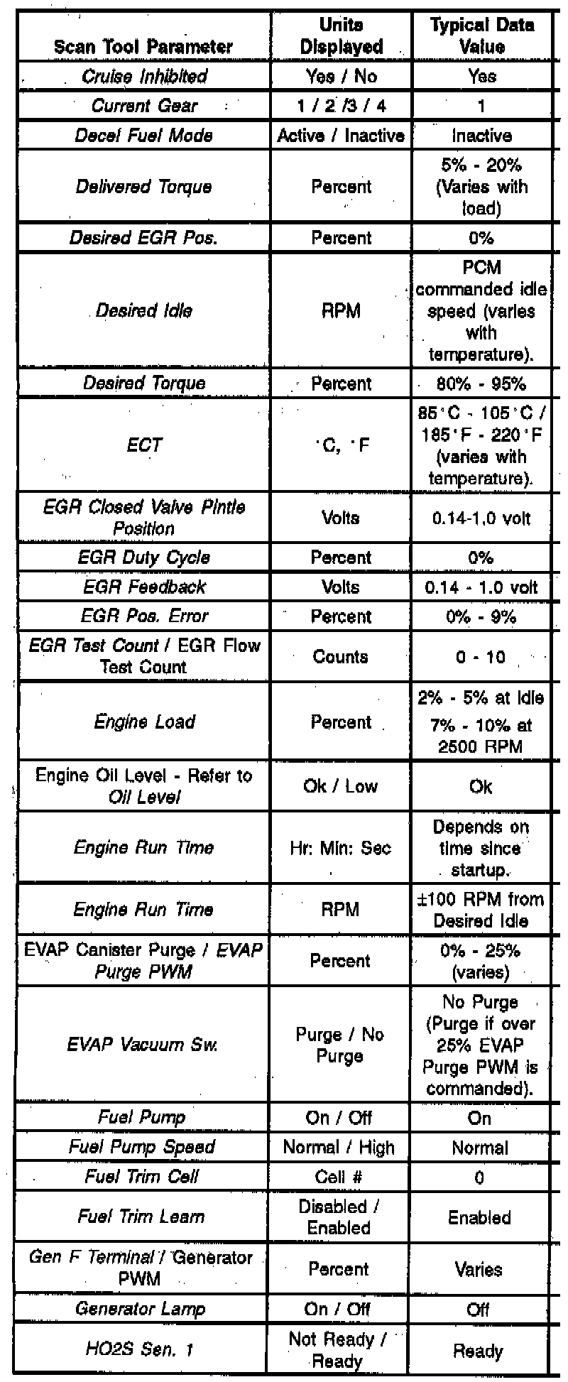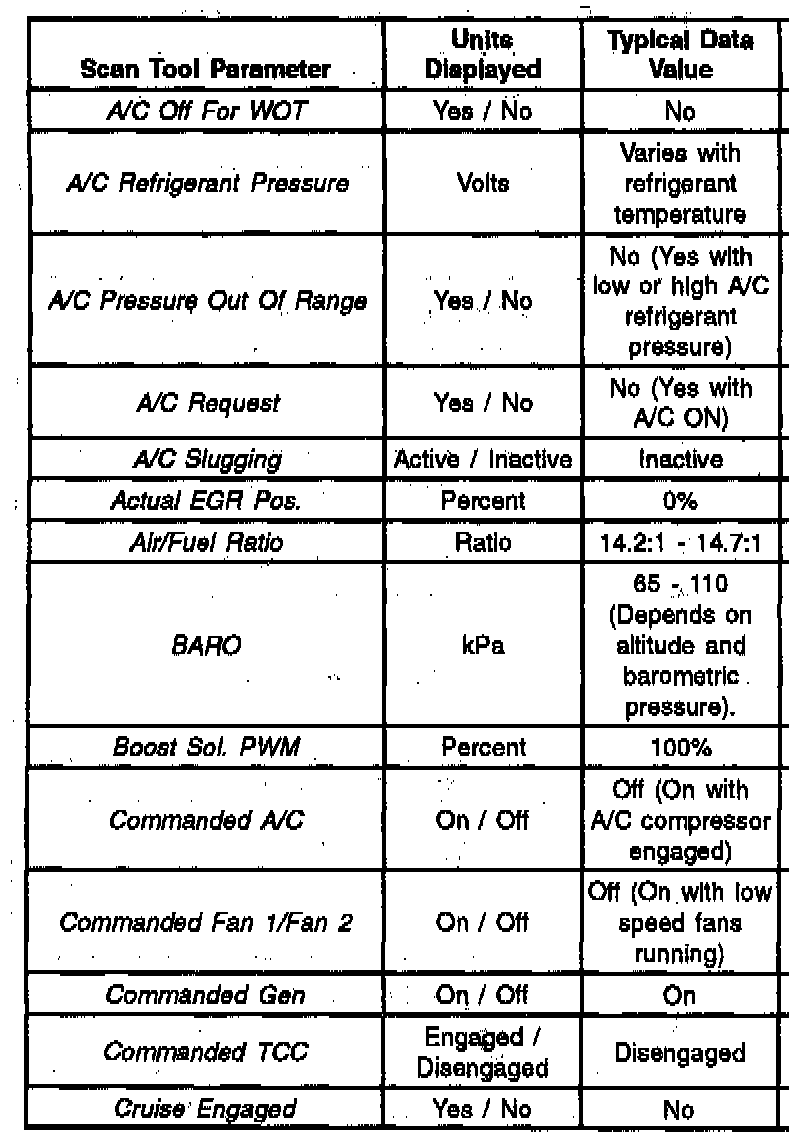 A/C OFF FOR WOT - CRUISE ENGAGEDEngine Scan Tool Data: