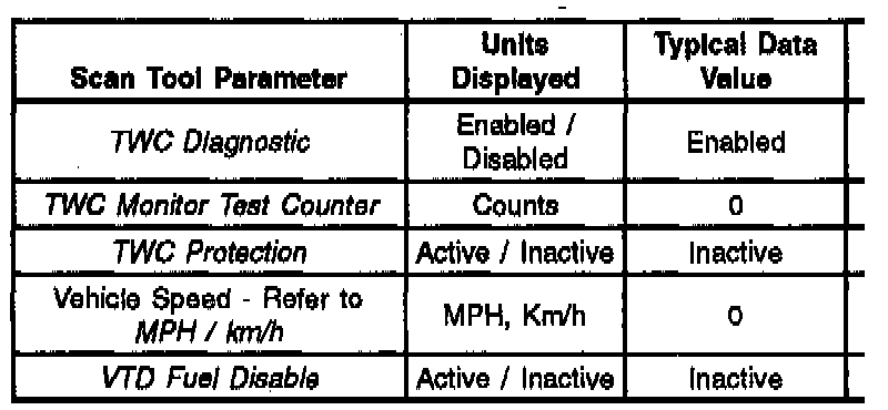 TWC DIAGNOSTIC - VTD FUEL DISABLE