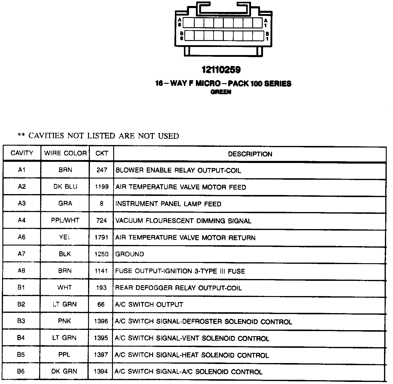 Heater And A/C Control Assembly CONN: C2:
