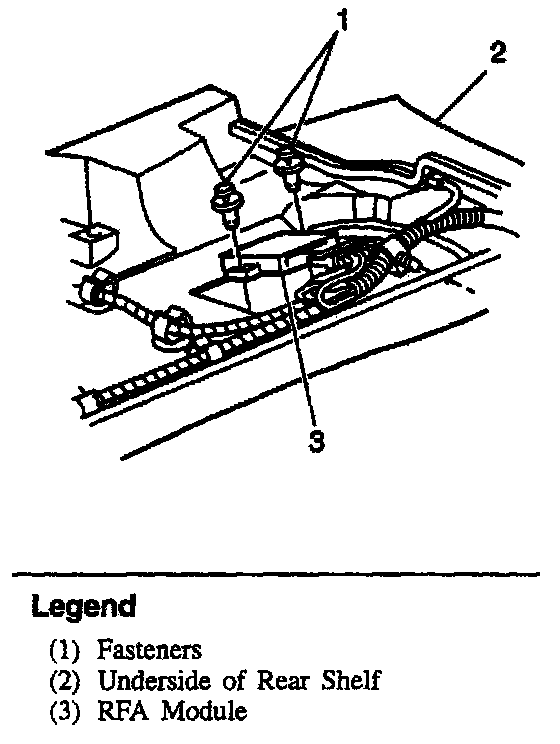 2. Two push in retainers securing RFA module to bottom of package shelf.