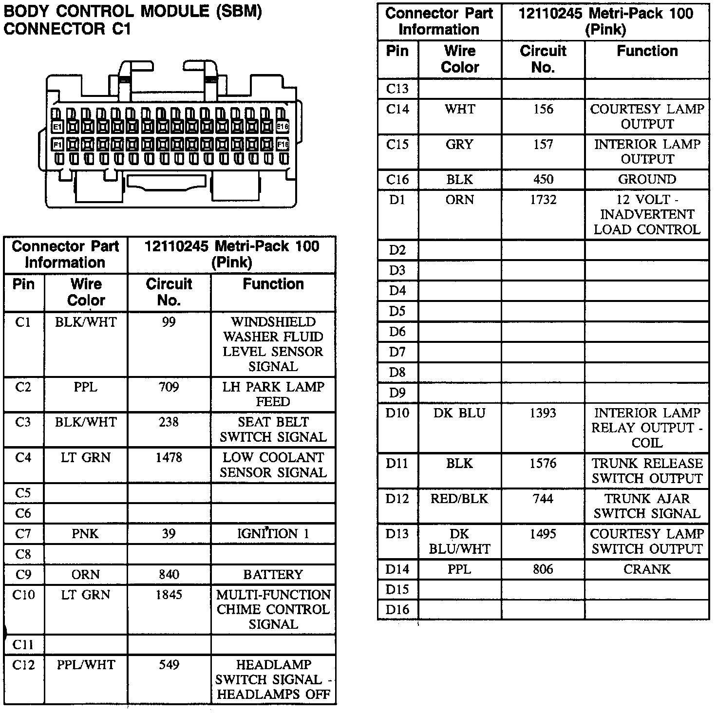 Body Control Module Connector C1: