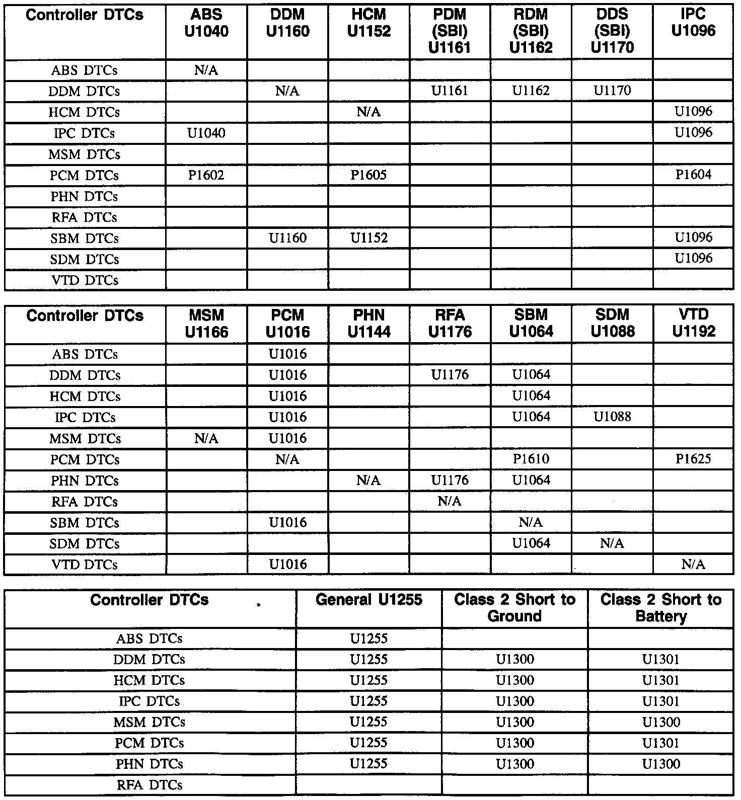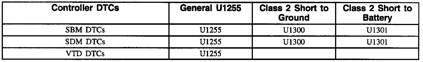 ^ The left column of the chart indicates which module(s) observed and broadcast this Loss of Class 2 Serial Data.