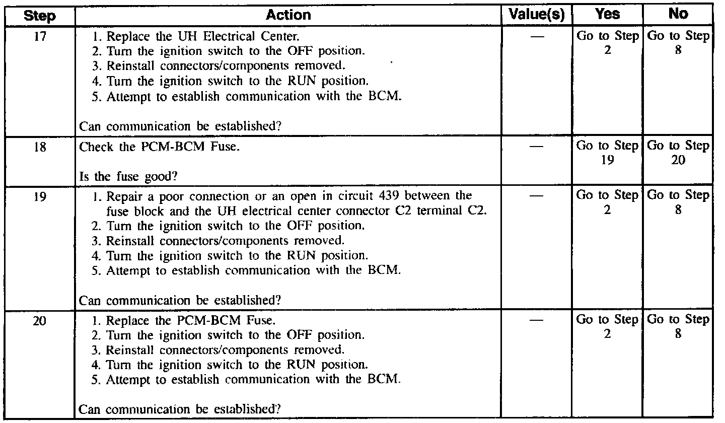 18. Checks to see if the open is in circuit 439 between the fuse block and the UH Electrical Center or if the PCM-BCM Fuse is bad.