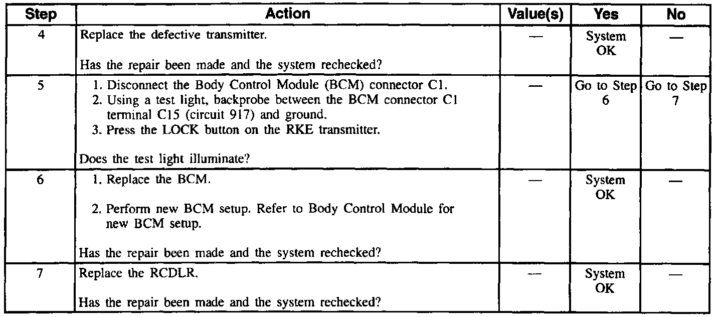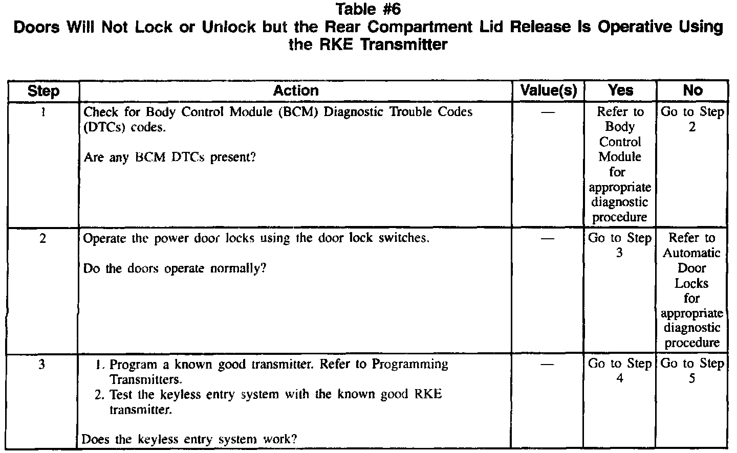 Table #6 Door Will Not Lock/Unlock But The Rear Compartment Lid Release Is Operative Using The RKE Transmitter (Part 2 Of 2):