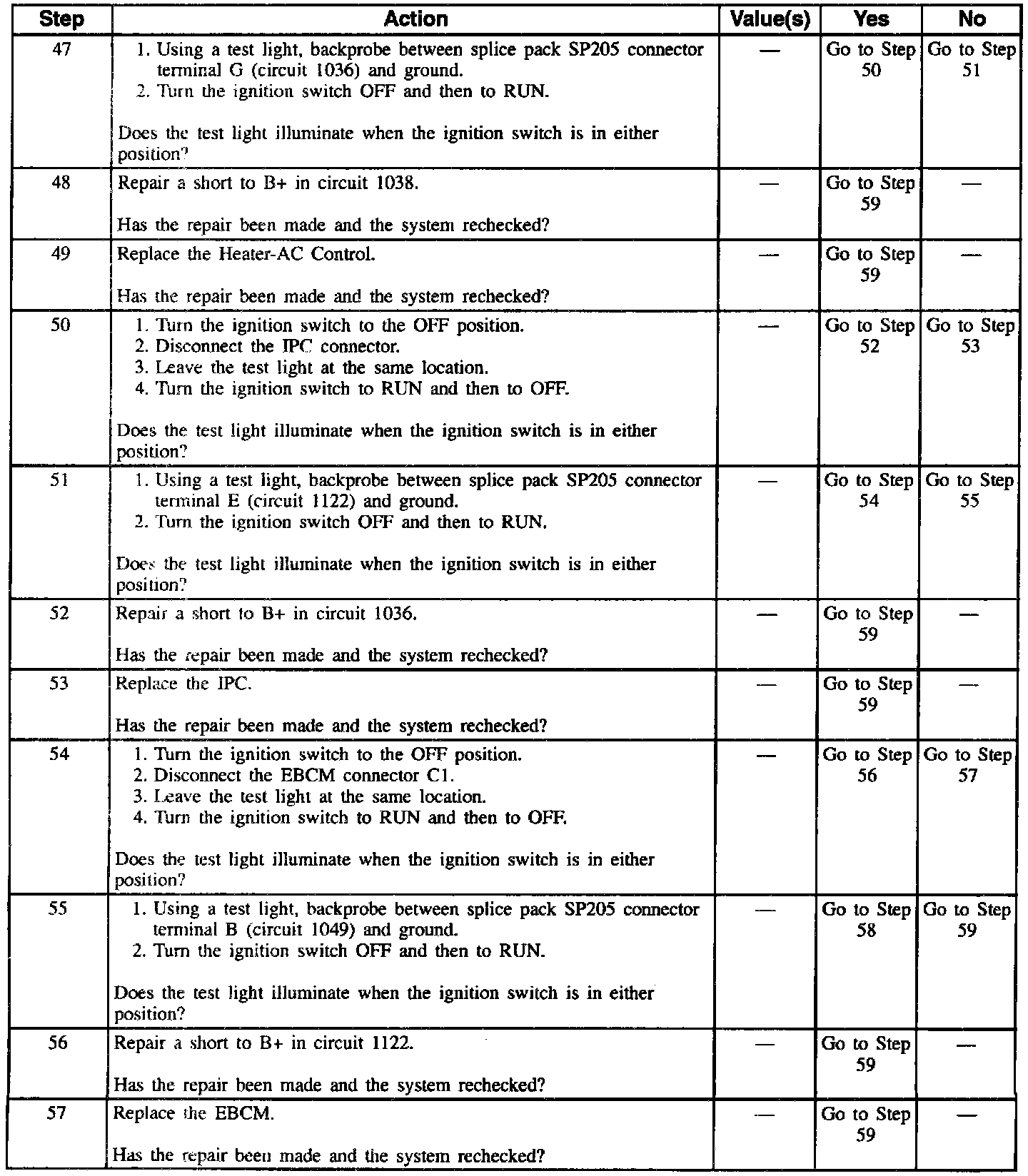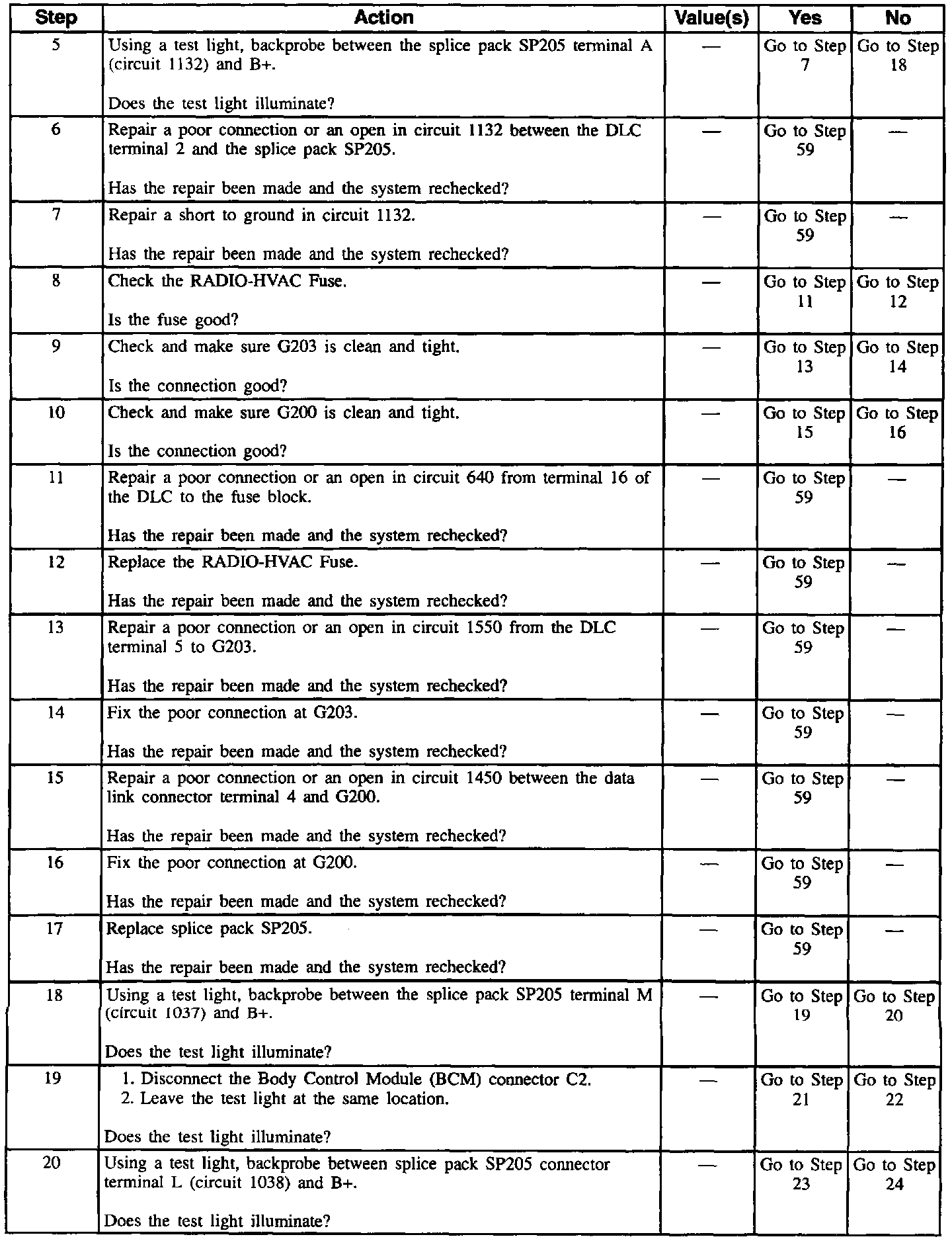 Table #2 Scan Tool Will Not Communicate With All Modules, Class II Serial Data Line (Part 5 Of 6):