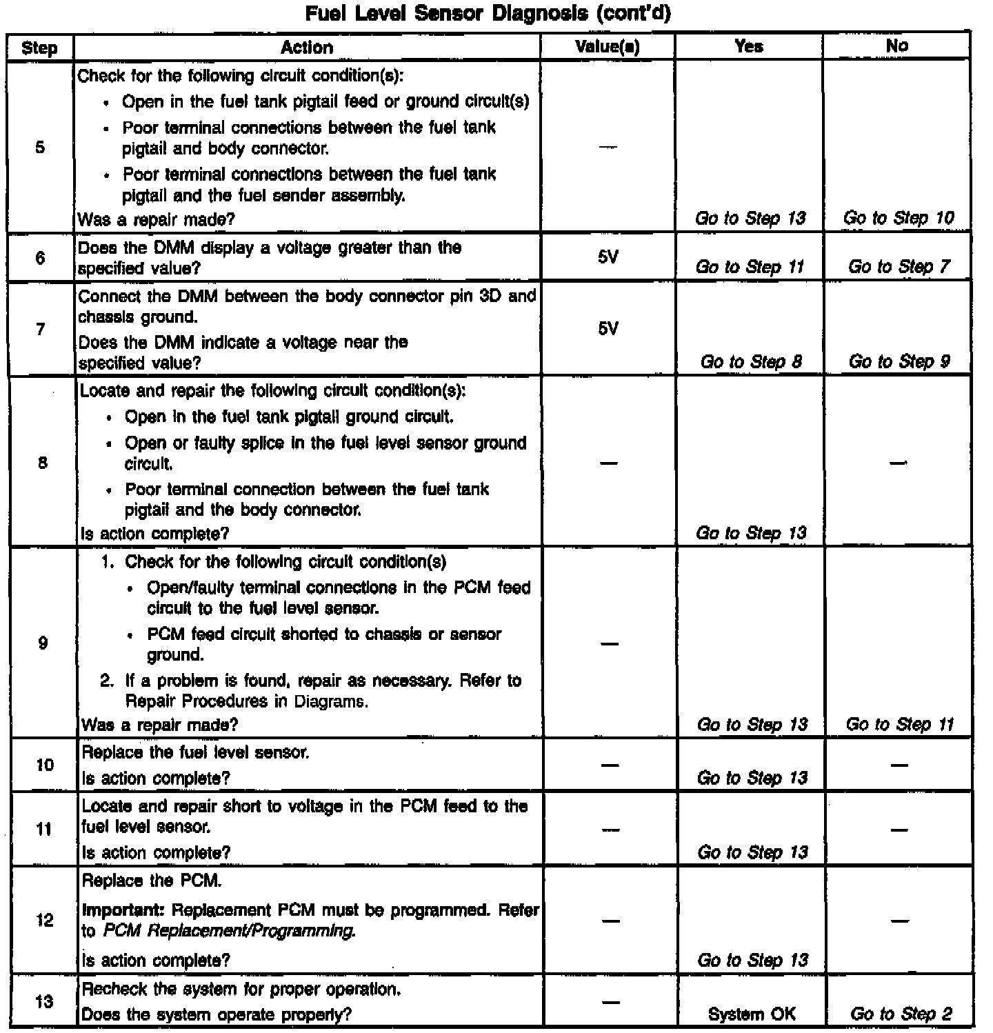 3. This checks for proper PCM voltage, ground and circuit wiring. The PCM supplies 5V to the fuel level sensor.
