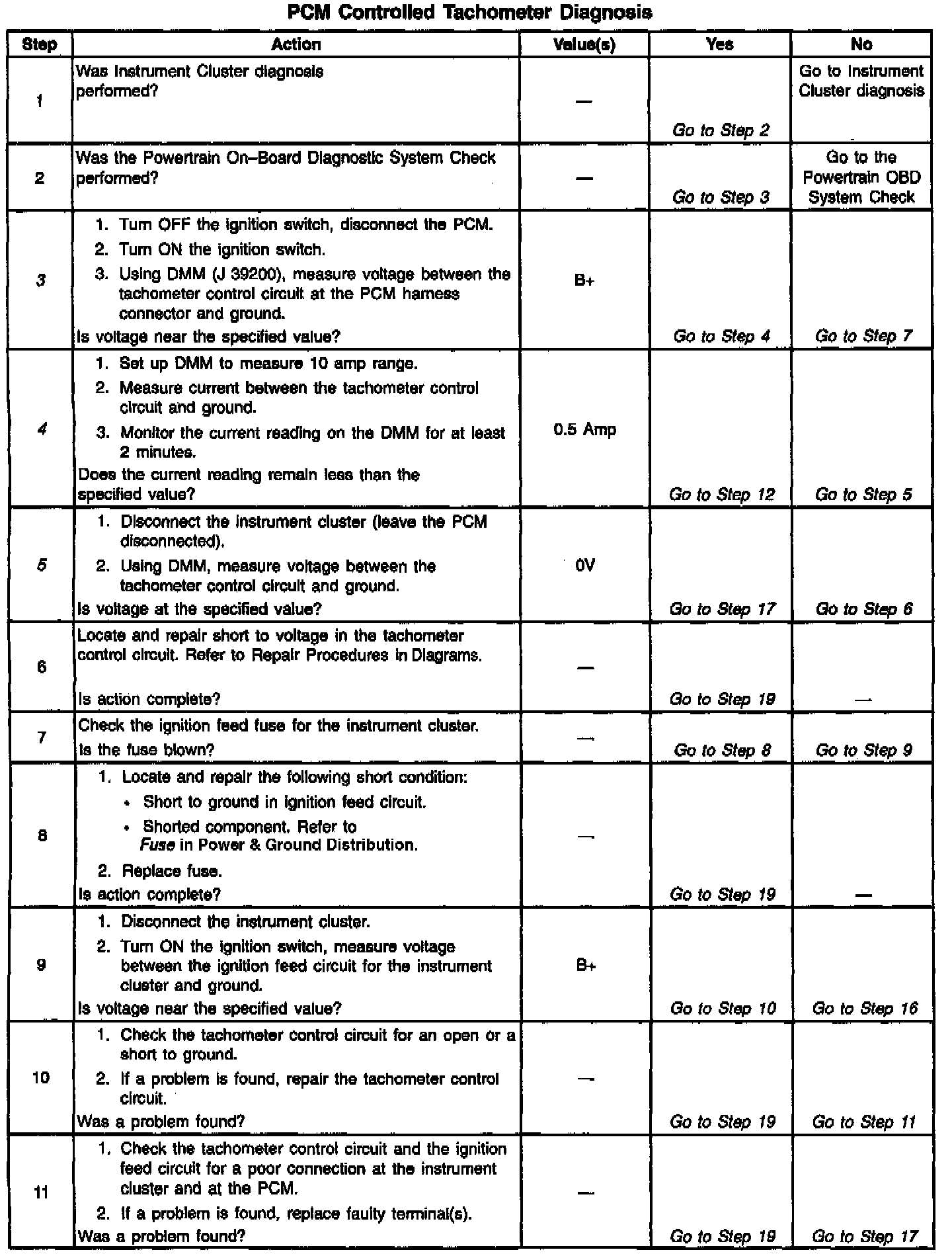 PCM Controlled Tachometer Diagnosis