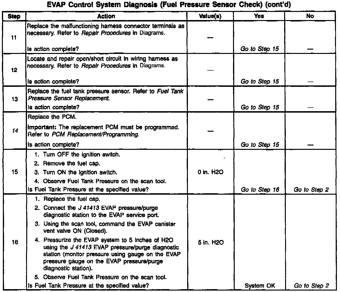The Fuel Tank Pressure Sensor Diagnosis table is intended to isolate and diagnose electrical problems with the sensor wiring or the sensor.