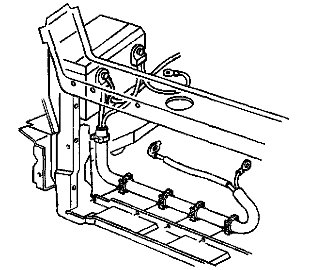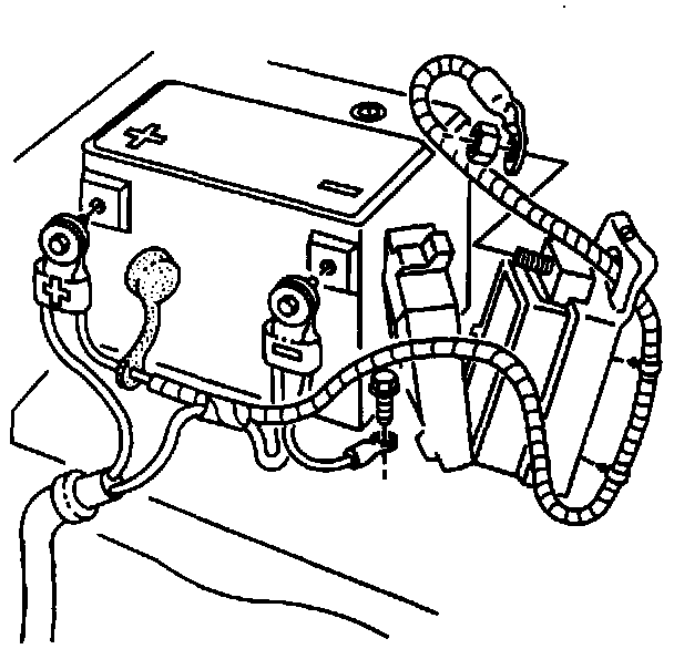 5. Battery ground (negative) cable and cable bolt/screw to frame rail near underhood electrical center.