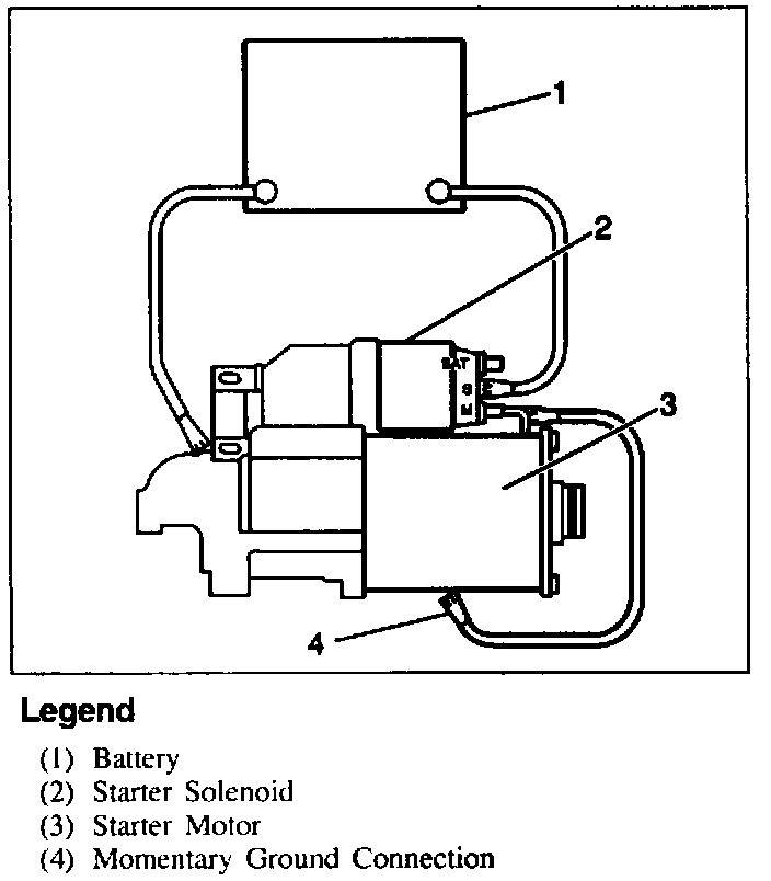^ The battery ground (negative) lead must be connected to a clean metal ground on the starter motor housing.