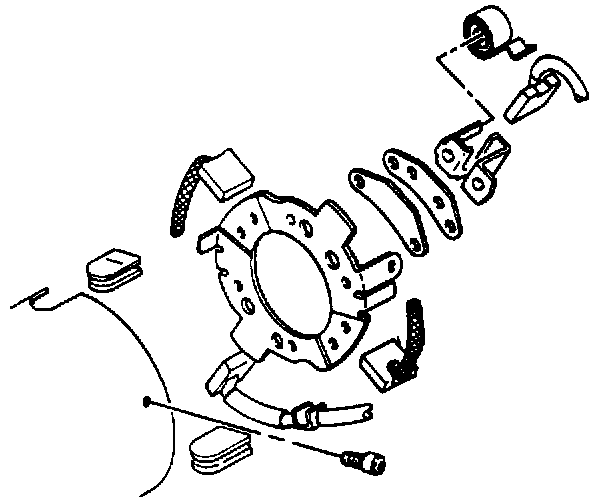 6. Armature with starter drive from DE frame by tilting to disengage drive collar from lever.