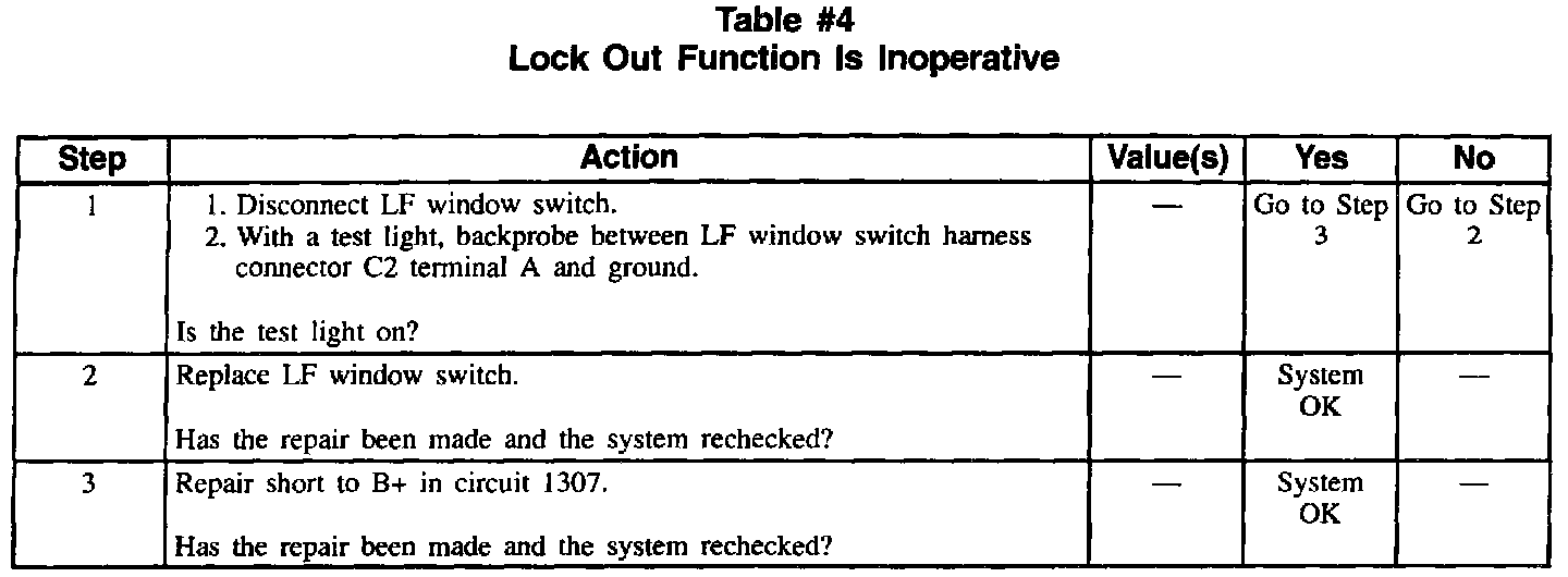 Table 4: Lock Out Function Is Inoperative