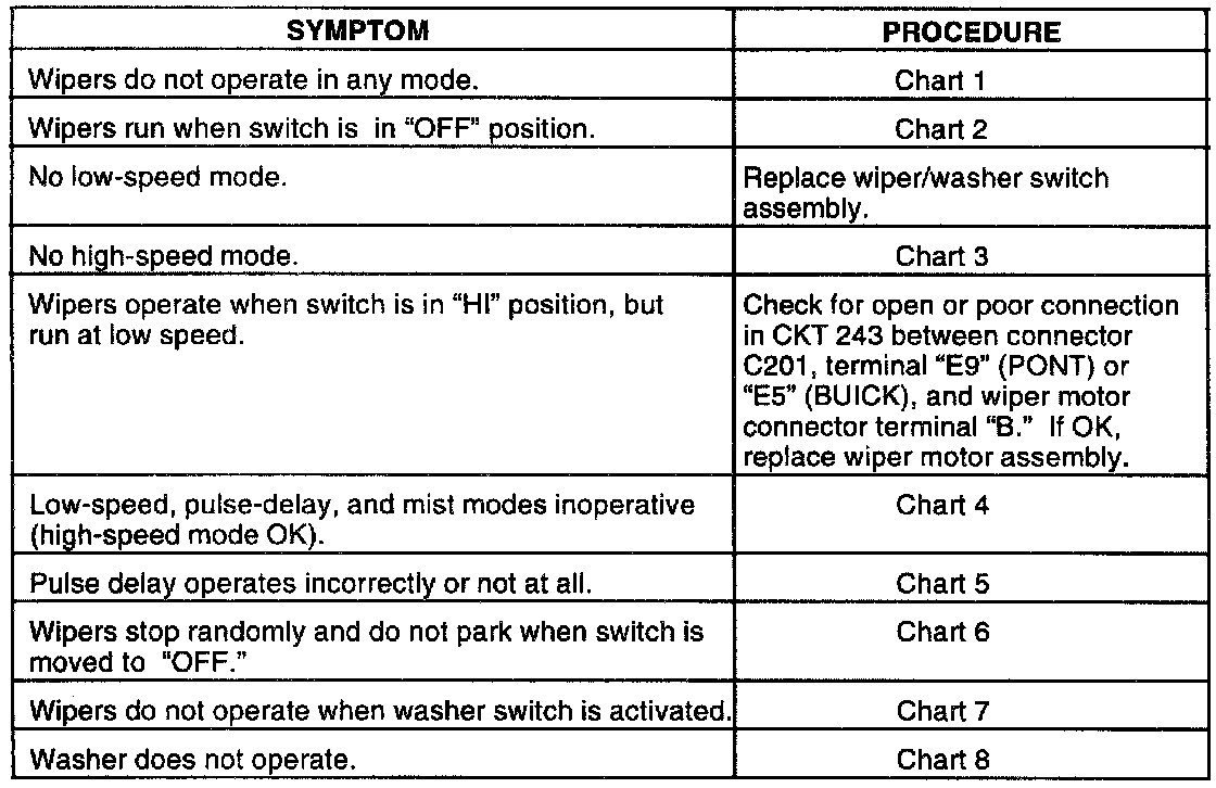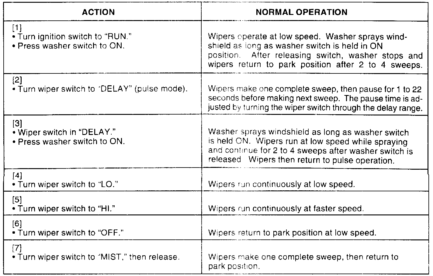 Perform the Wiper/Washer System Check; then refer to the Symptom Table for the appropriate diagnostic procedures.